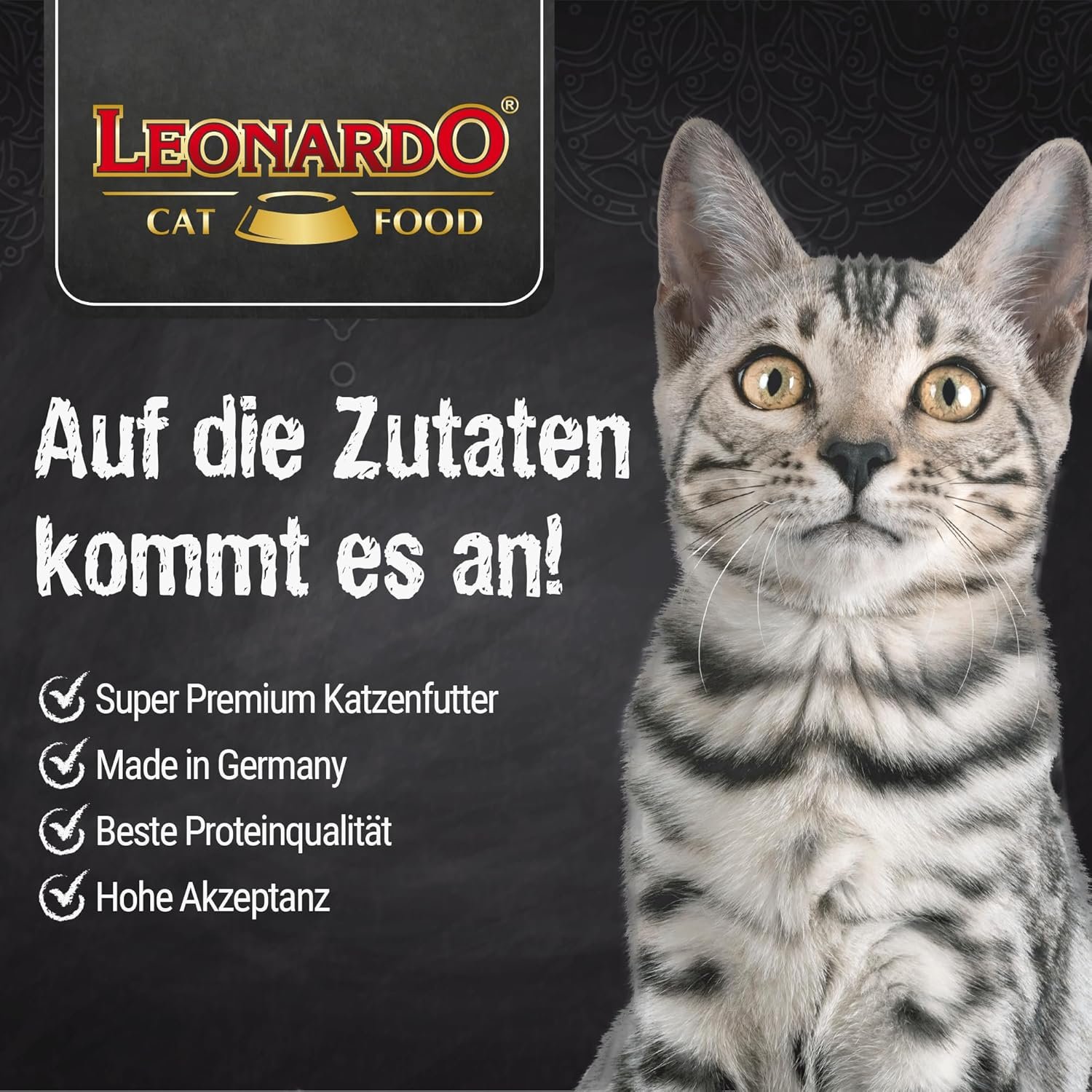 Zum Warenkorb hinzufügen Zum Warenkorb hinzufügen Zum Warenkorb hinzufügen Zum Warenkorb hinzufügen Zum Warenkorb hinzufügen Zum Warenkorb hinzufügen Kundenrezensionen 4,7 von 5 Sternen 339 4,8 von 5 Sternen 301 4,5 von 5 Sternen 431 4,4 von 5 Sternen 925 4,0 von 5 Sternen 6 4,6 von 5 Sternen 1.233 Preis 41,89 €41,89 € 8,69 € 8,69 € 22,31 € 22,31 € 15,65 € 15,65 € 25,45 € 25,45 22,19 € 22,19 € Alleinfuttermittel ✓ ✓ ✓ keine Daten ✓ ✓ Getreidefreie Formel keine Daten ✓ ✓ ✓ ✓ ✓ Ohne Zuckerzusatz ✓ ✓ ✓ ✓ ✓ ✓ Hergestellt in Deutschland ✓ ✓ ✓ ✓ ✓ ✓ Besonderheit: Verfeinert mit Krill, der reich an gut verfügbaren Omega-3-Fettsäuren ist. So bekommen kleine Kätzchen ein seidiges Fell ohne Verdauungsprobleme. Fleisch ist ein kostbares Gut – daher ist es unser Anspruch, es bestmöglich zuzubereiten. Für den Leonardo-Frischlachs verarbeiten wir Frischfleisch und verzichten weitestgehend auf vorgetrocknete Fleischmehle. Leonardo Chicken mit extra Pulled Beef – saftiges Hähnchen mit extra gerupftem Rindfleisch. Einzigartiges Kauerlebnis und besonderer Geschmack. Sanft gegart und mit Lachsöl verfeinert für seidiges Fell. Das Getränk für Katzen, die nicht gerne trinken. Ideal als Ergänzung zum Trockenfutter. Köstlicher Hering in bester Qualität mit extra Putenfiletstücken für besonderen Fleischgenuss und Kauerlebnis. Schonend im eigenen Saft gegart. Unwiderstehlich! Saftiges Fleisch wurde mit raffinierten Zutaten verfeinert und im Portionsbeutel schonend gegart. Lachsöl liefert mehrfach ungesättigte Fettsäuren.