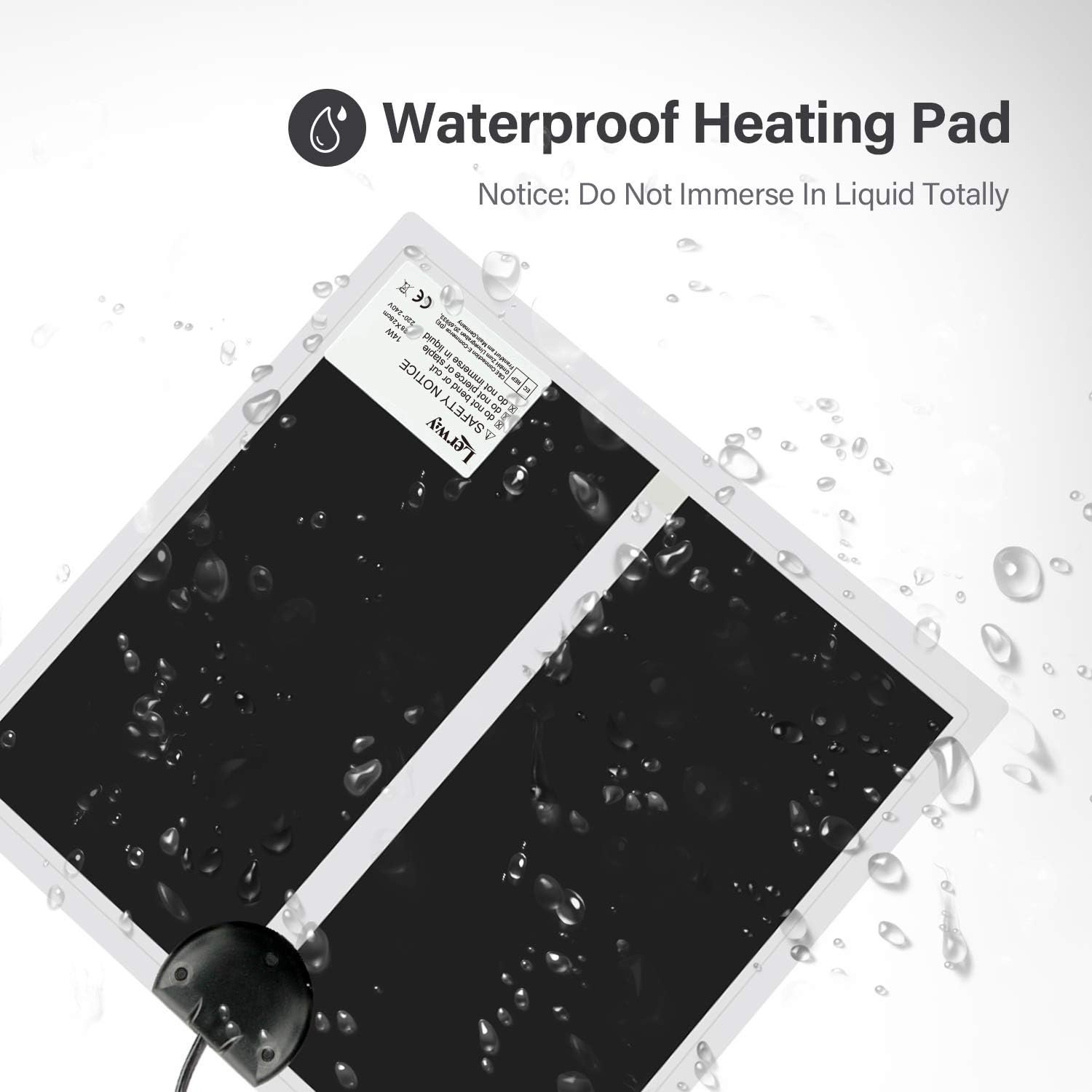 Dank der Oberflächenschicht aus Ultra-Kunststoff ist dieses Heizmatten-Terrarium wasserdicht. Bitte vermeiden Sie es dennoch, das Gerät in Wasser zu tauchen, da es sonst zu einem Kurzschluss und Verbrennungsgefahr kommen kann.