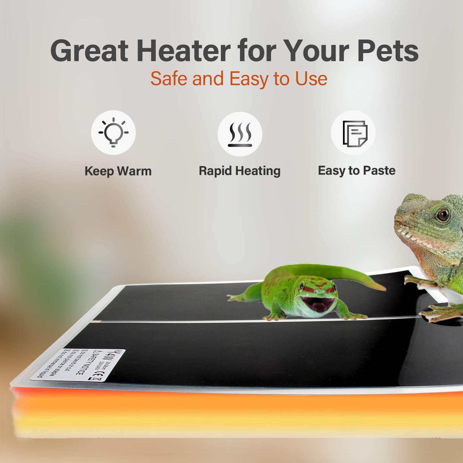 Die Leistung dieser Reptilien-Heizmatten beträgt jeweils 14 W. Sie heizen innerhalb von 5 Sekunden auf und können auf bis zu 35 Grad eingestellt werden. Durch die entsprechende Einstellung des Temperaturreglers sorgen Sie für sanfte Wärme, die Ihre Haustiere bei normalem Gebrauch nicht gefährdet.