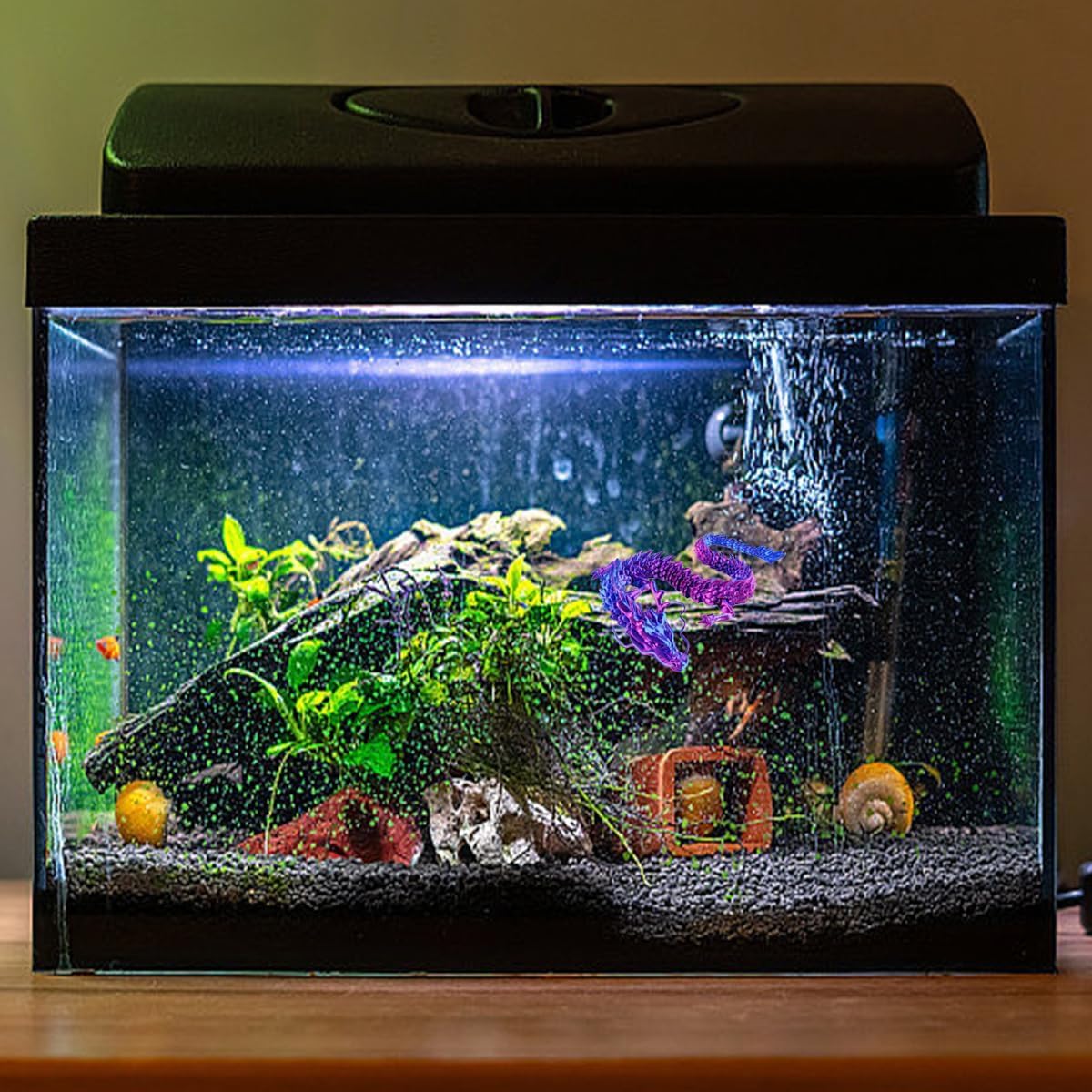 Gestalten Sie ein bezauberndes Aquarium: Verwandeln Sie Ihr Aquarium mit diesem atemberaubenden Drachenornament in ein mystisches Reich. Die blau-lila Farbe verleiht einen Hauch von Mystik, fügt sich nahtlos in verschiedene Wasserlandschaften ein und sorgt für eine magische Atmosphäre.