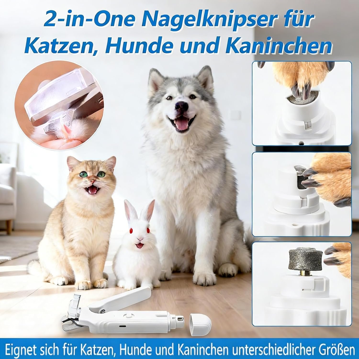 Zwei-in-eins-Design: Krallenschere mit integriertem Zwei-in-eins-Design, das Schere und Nagelfeile in einem kompakten Gerät vereint und präzises Trimmen und sanftes Formen ermöglicht, ohne Haustiere zu überfordern.
