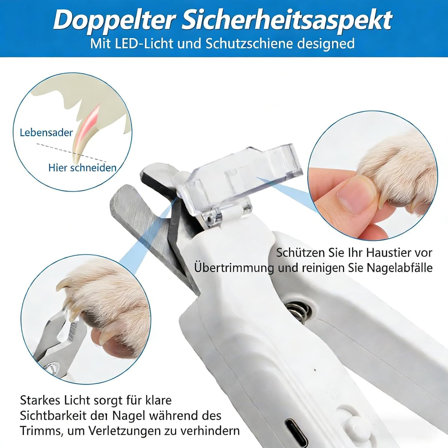 Light Scissors Pro – 2-in-1 LED-Lichtschere Hund & Katze für sichere Pfotenpflege, ohne Angst, mit Spritzschutz