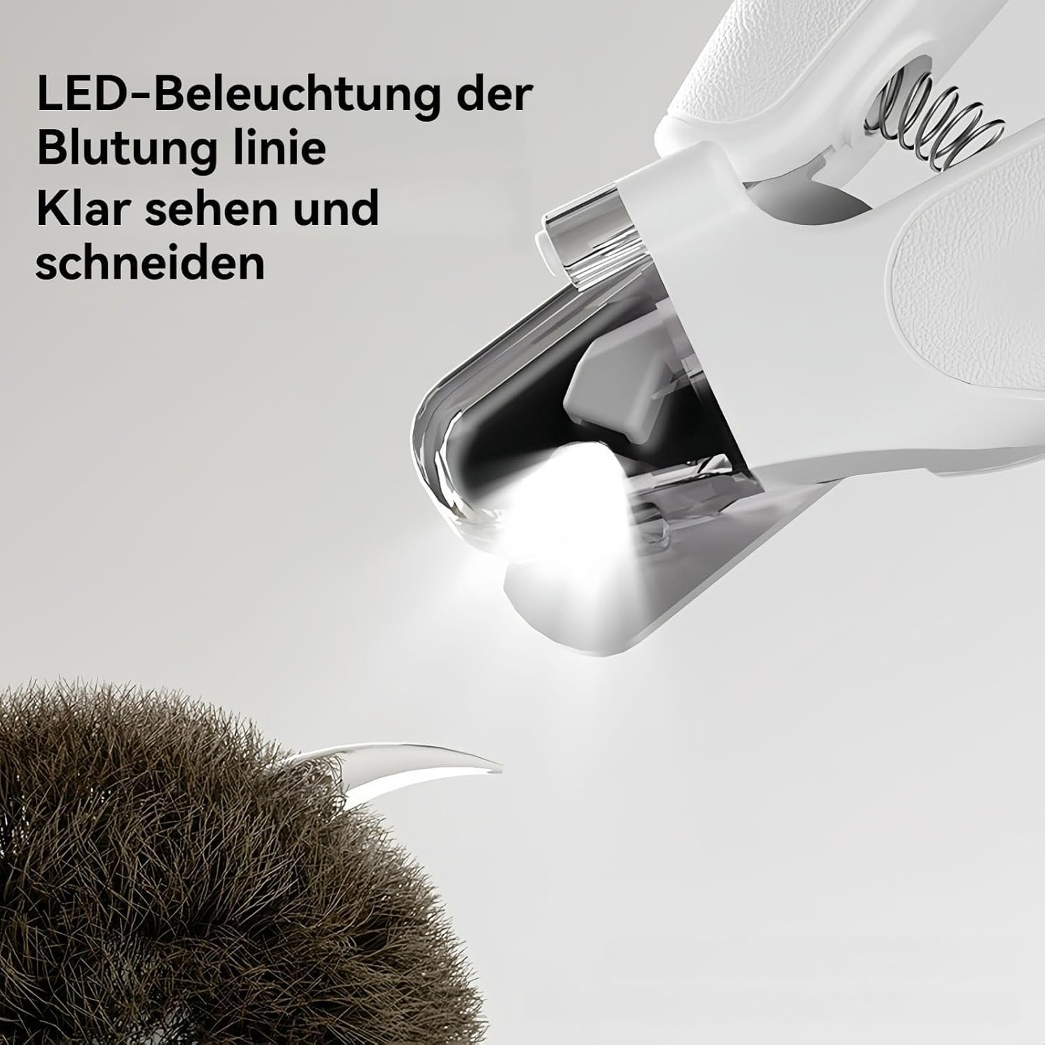 Elektrische Hundekrallenschere mit Licht – Blutgefäße sichtbar: Die beiden eingebauten LEDs beleuchten die Krallen. Dies hilft Ihnen, die Blutgefäße zu erkennen, um ein sicheres und kontrolliertes Kürzen der Krallen zu ermöglichen