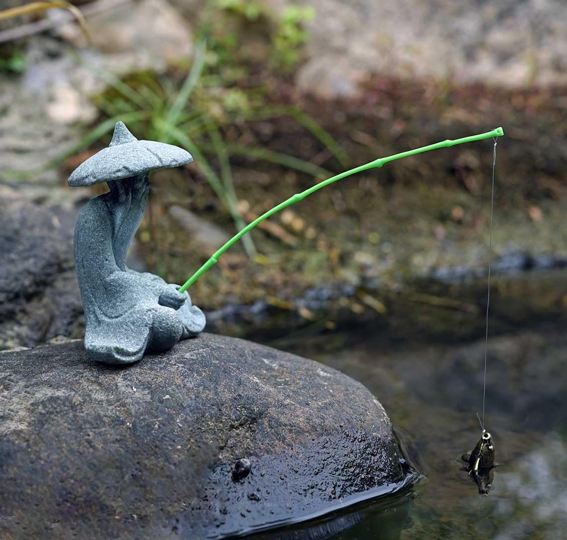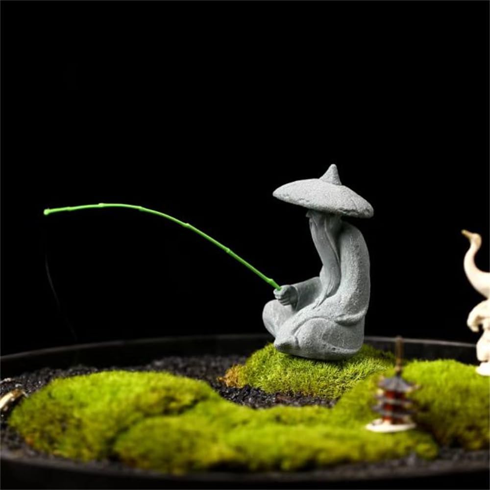 Bonsai-Fischerfiguren: Die Angelstatue ist leicht zu reinigen, sicher für Wasserpflanzen und Fische und eignet sich für Süß- und Salzwasserumgebungen