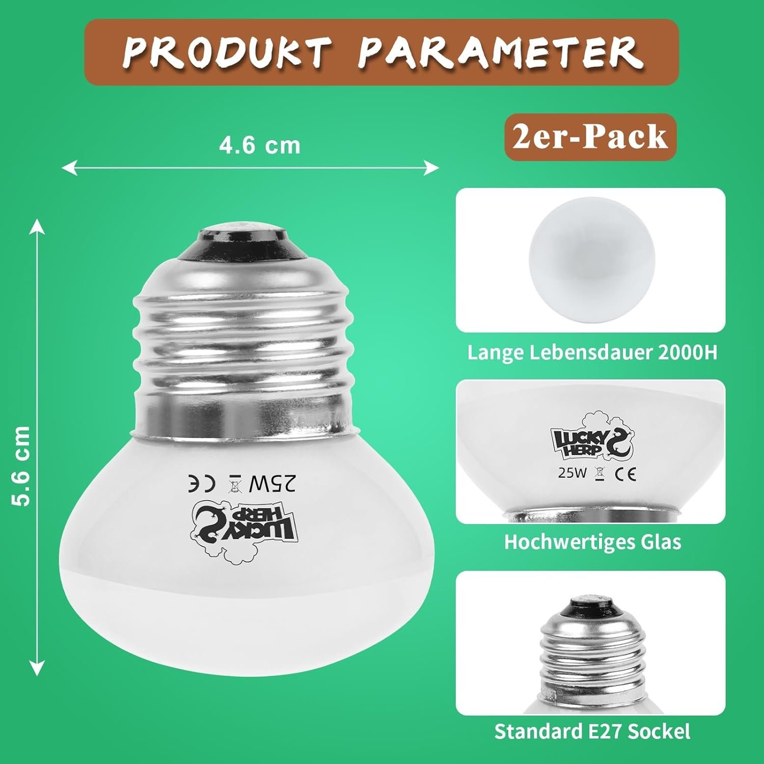 Simuliert natürlichen Sonnenschein – die verbesserte 25-W-Reptilien-Wärmelampe von LUCKY HERP simuliert natürliches Sonnenlicht, strahlt Licht aus, das dem natürlichen Spektrum nahe kommt, und sorgt für einen starken und stabilen Heizeffekt, der dafür sorgt, dass Ihr Haustier in kalten Umgebungen warm und komfortabel bleibt und die perfekte Umgebung zum Sonnenbaden schafft.
