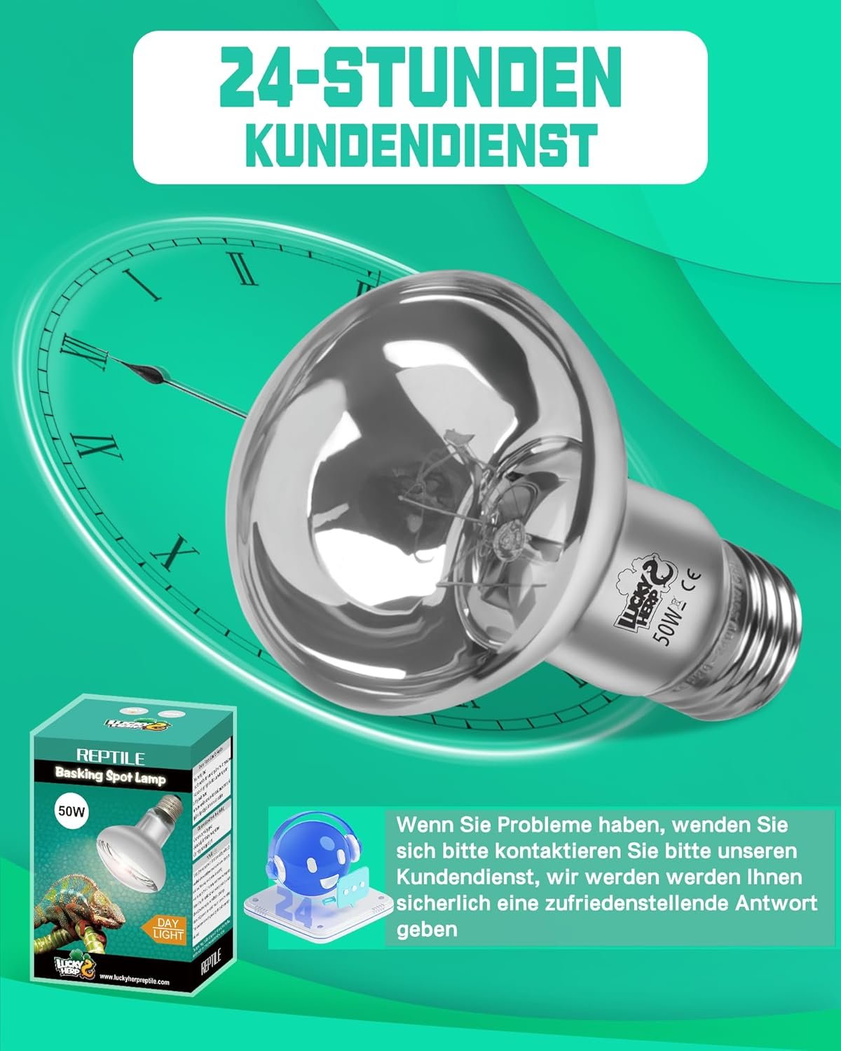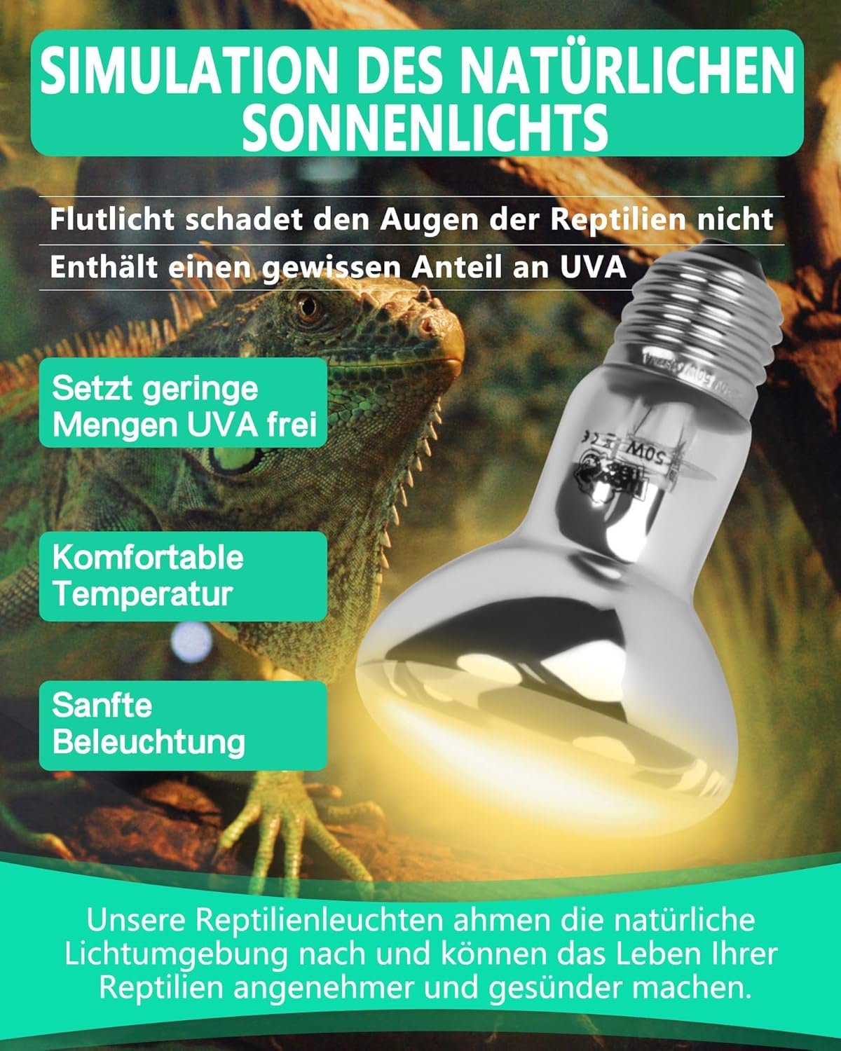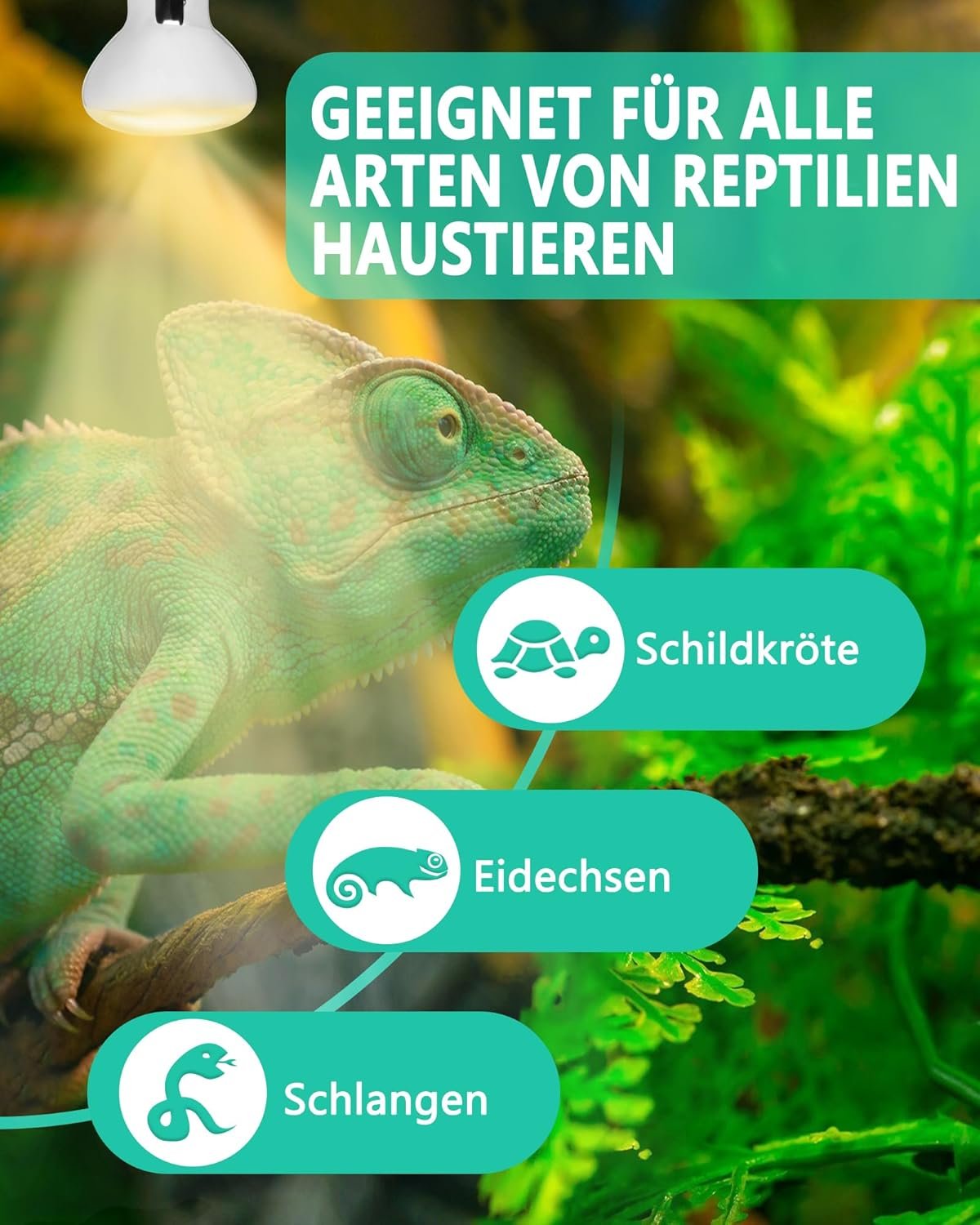 Questa lampada è progettata per fornire calore ai rettili, creando un basking spot ideale per tartarughe e galline. Ha un attacco E27, quindi è compatibile con la maggior parte dei portalampade standard. Con una potenza di 150 W, è in grado di generare una quantità considerevole di calore, ideale per terrari di medie e grandi dimensioni.