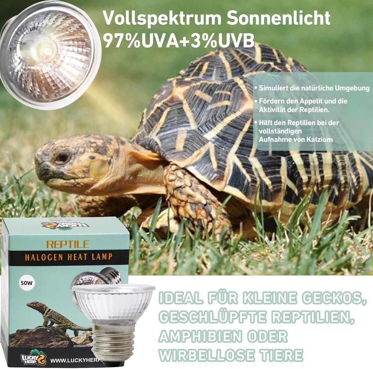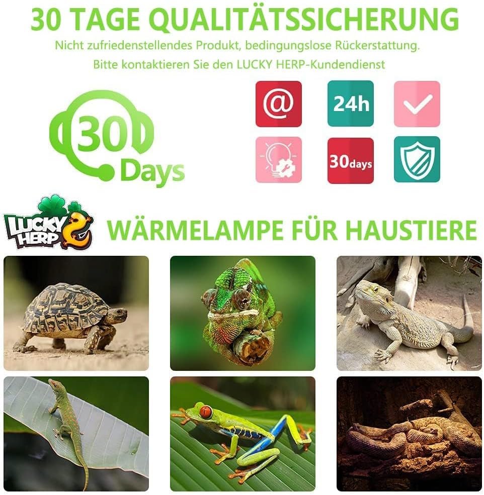 Für viele Tiere geeignet – Unsere Wärmelampen eignen sich perfekt für kleine Geckos, junge Reptilien, Amphibien oder Wirbellose. Wie Schildkröten, Landschildkröten, Spinnen, Vogelspinnen, Schlangen, Königspythons, Eidechsen, Geckos, Bartagamen, Leguane, Frösche, Igel usw.