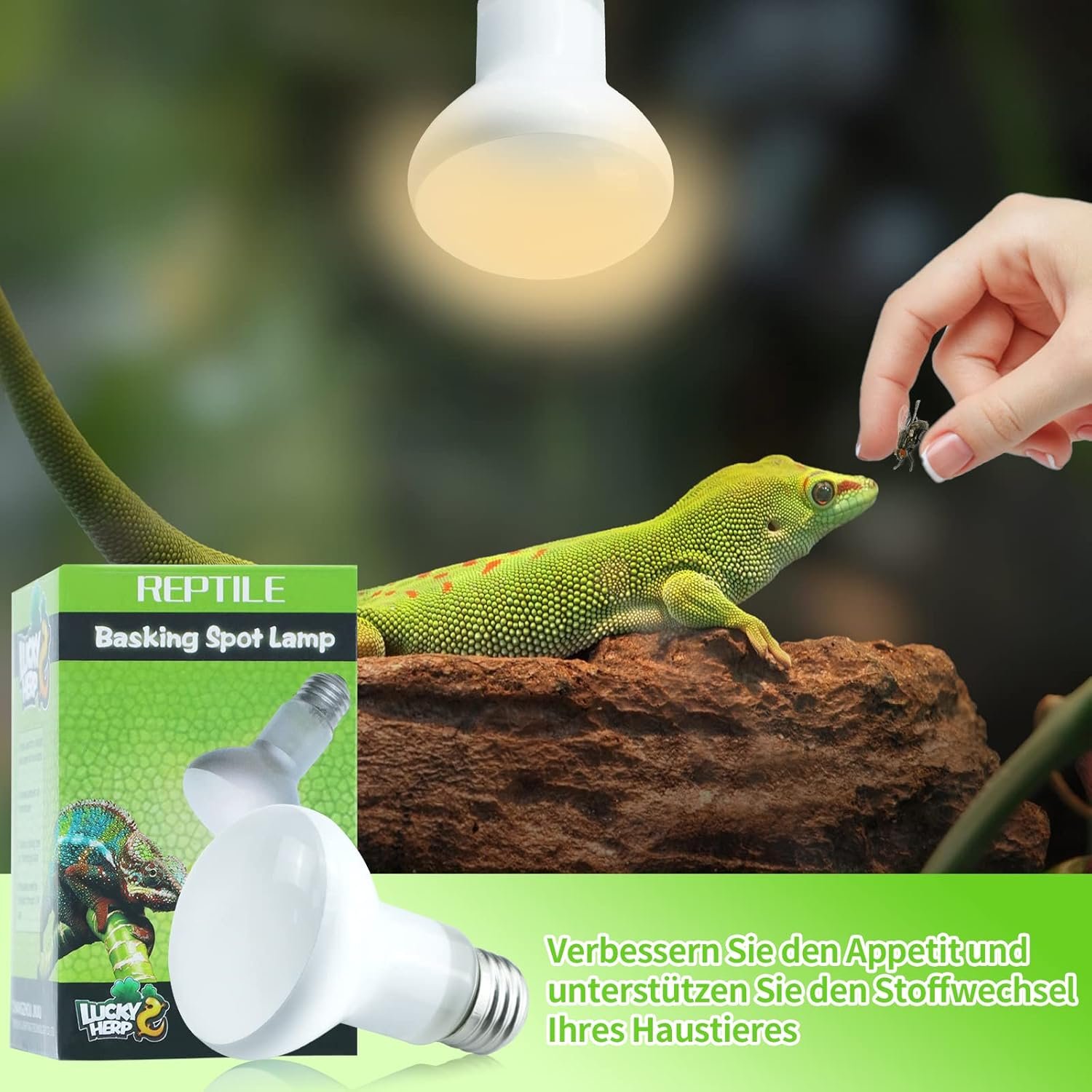 Effiziente Heizung – Unsere Wärmelampen schaffen einen Bereich, in dem die Reptilien sich sonnen können, erhöhen die Gesamtlufttemperatur im Glasbehälter, helfen den Reptilien, ihre eigene Körpertemperatur zu regulieren und schaffen ein angenehmes Wohnumfeld für sie.
