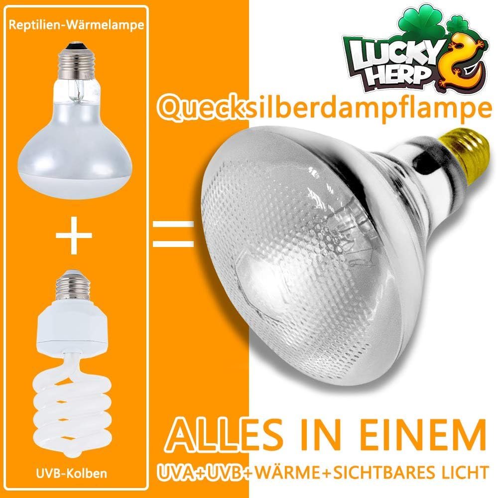 Perfekte UVB-Tageslichtlampe: Wärme & UVA/UVB/sichtbares Licht in einer Lampe, kein schädliches UVC – Quecksilberdampflampe mit eingebautem Vorschaltgerät simuliert Sonnenlicht, hält Tiere warm und fördert die für die Gesundheit notwendige Vitaminproduktion.