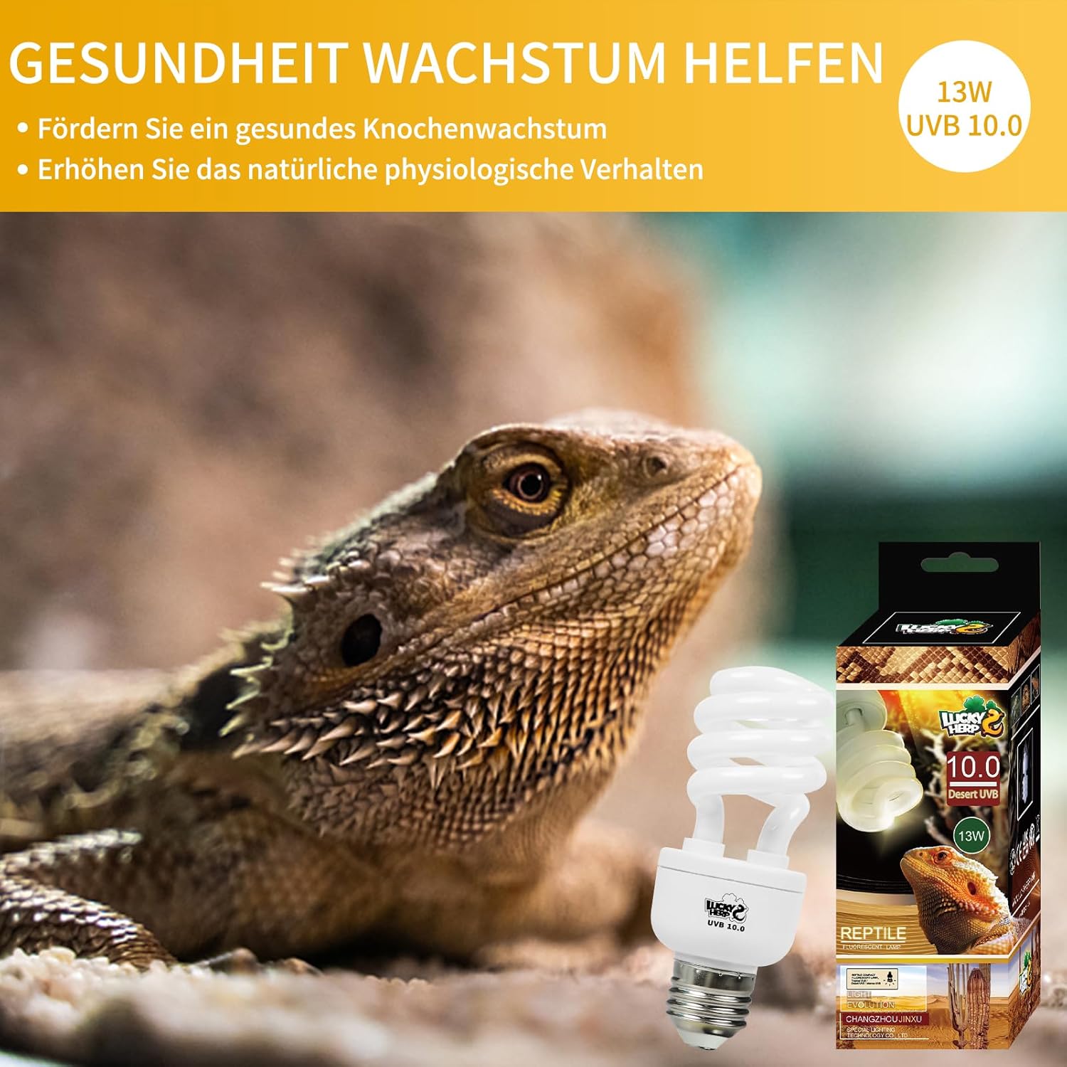LUCKY HERP UVB 10.0 Reptilienlicht ist für Reptilien nützlich, um Vitamin D3 und Kalzium zu produzieren.