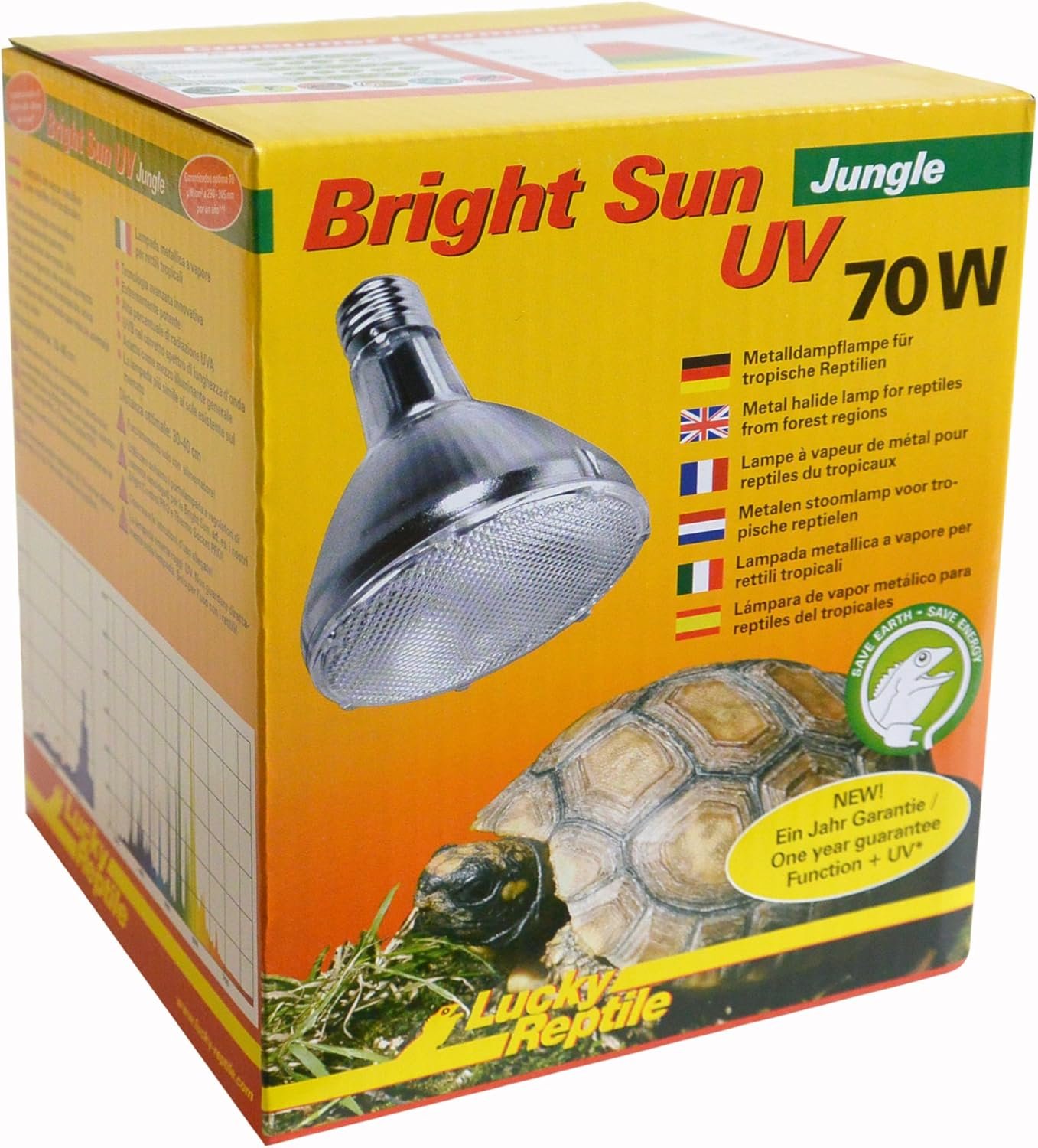 Lucky Reptile Bright Sun UV Jungle, Metall-Dampflampe für E27-Fassung mit UVA- und UVB-Strahlen., 70 Watt (Vorschaltgerät erforderlich)