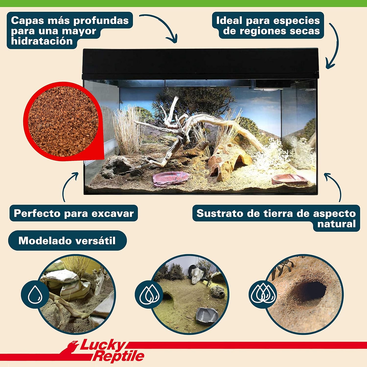 NATÜRLICHES UNTERSTÜTZ – Bei unserem Lucky Reptile Desert Bedding handelt es sich um eine speziell für Wüsten- und Savannenterrarien entwickelte Erde, die Ihr Terrarium in ein sehr natürlich wirkendes Biotop verwandelt.
