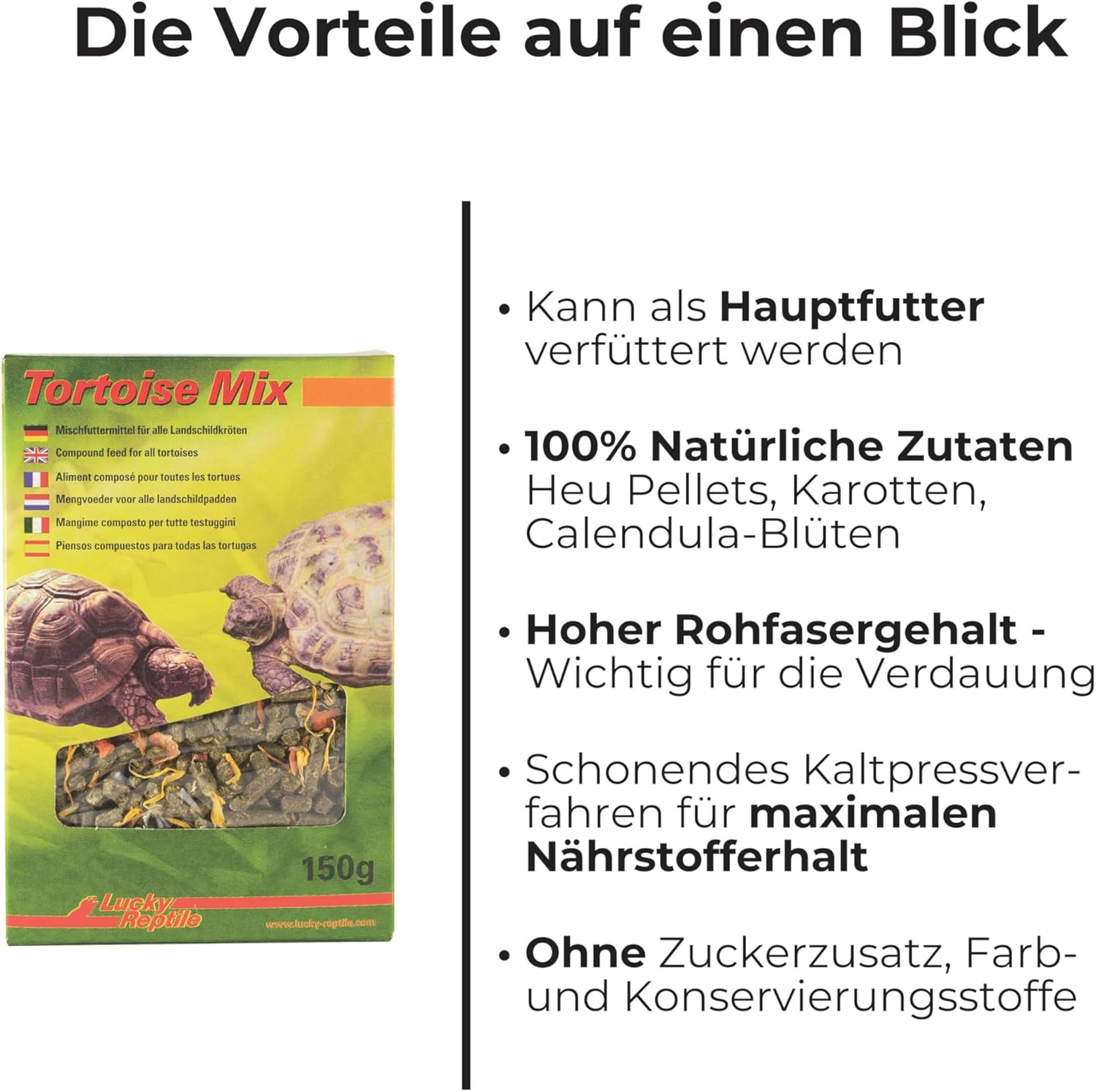 Gesund – Reich an Rohfasern zur Unterstützung der Verdauung und des allgemeinen Wohlbefindens Ihrer Schildkröte.