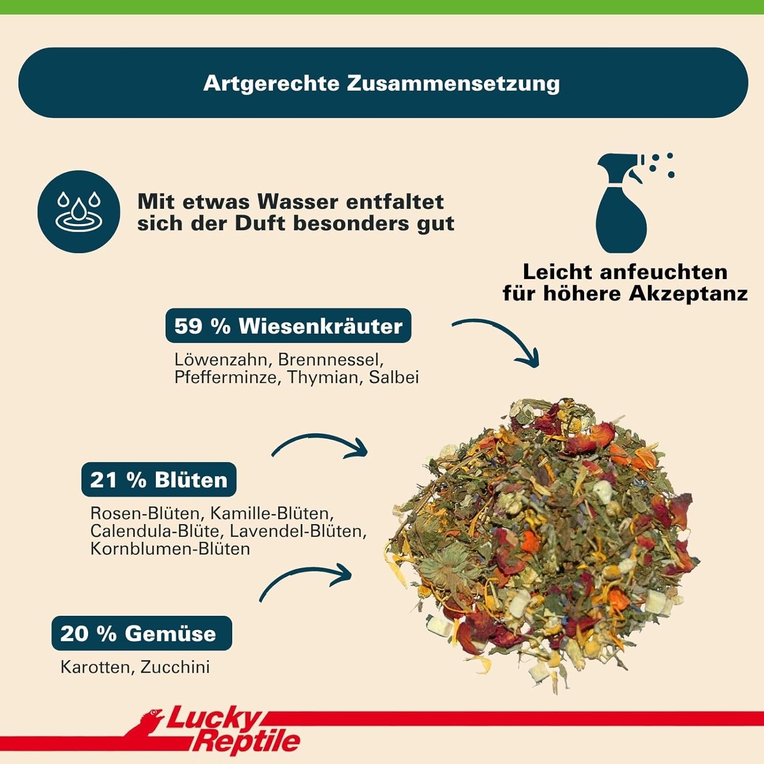 Einzelfuttermittel – die ausgewogene, köstliche Mischung ist reich an natürlichen Vitaminen und Mineralstoffen sowie ohne Farb- und Konservierungsstoffe hergestellt – ideal als Hauptfutter für mediterrane Landschildkröten.