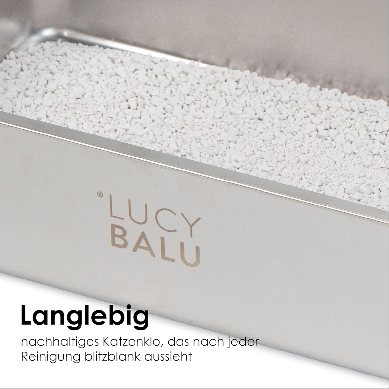 Super hygienisch: Die glatte Edelstahlwanne ist besonders leicht zu reinigen. Darüber hinaus verfügt die Katzentoilette über einen hohen Rand. Es gibt keine hygienischere Katzentoilette auf dem Markt.