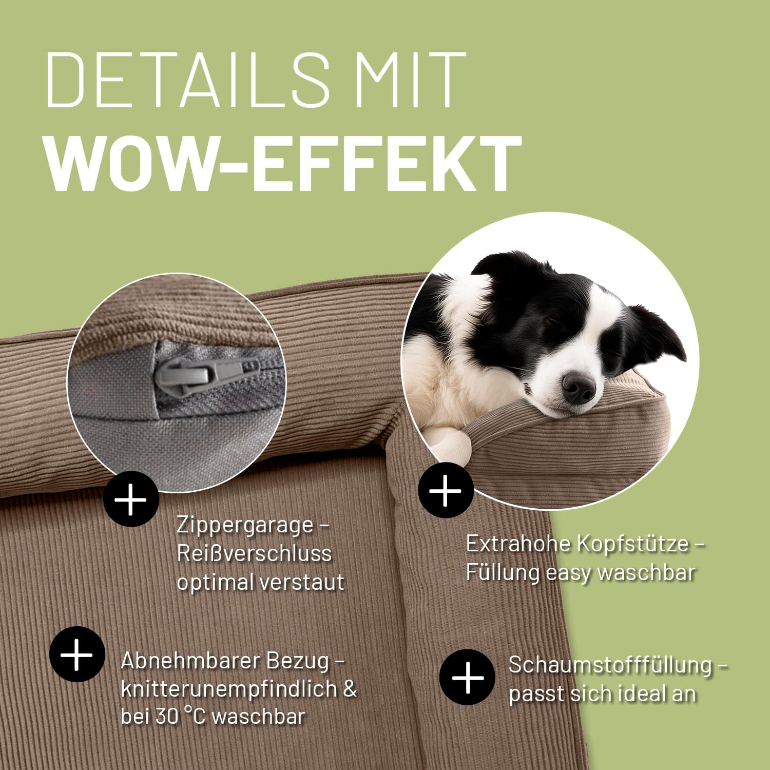 PET EDITION: Bequemes Hundebett mit Cordbezug, Reißverschluss und bequemem Einstieg – Lieferung vakuumverpackt