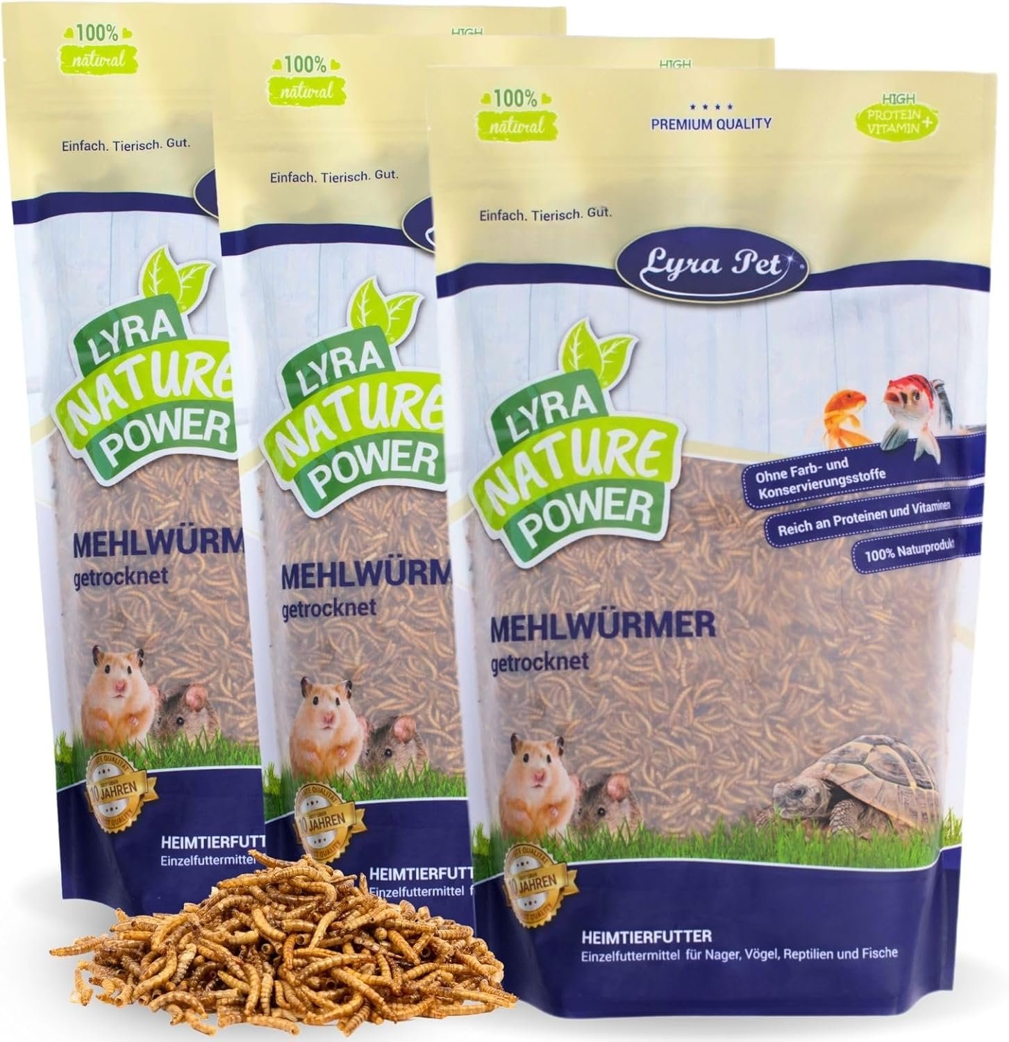Natürlich gut: Unsere getrockneten Mehlwürmer sind zu 100 % ein reines Naturprodukt. Sie enthalten keine Zusatzstoffe, Geschmacksverstärker oder Lockstoffe.