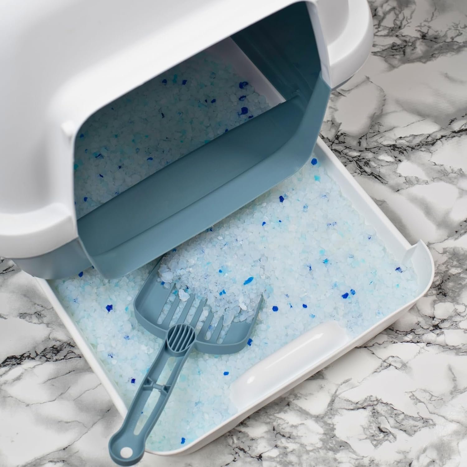 Leicht zu reinigen: Entfernen Sie täglich feste Ausscheidungen und mischen Sie die Katzenstreu, um verbleibende Flüssigkeiten aufzunehmen. Füllen Sie dann einfach das Fassungsvermögen auf ca. 3 cm auf. Erst nach 3-4 Wochen muss die Katzentoilette komplett gereinigt werden.