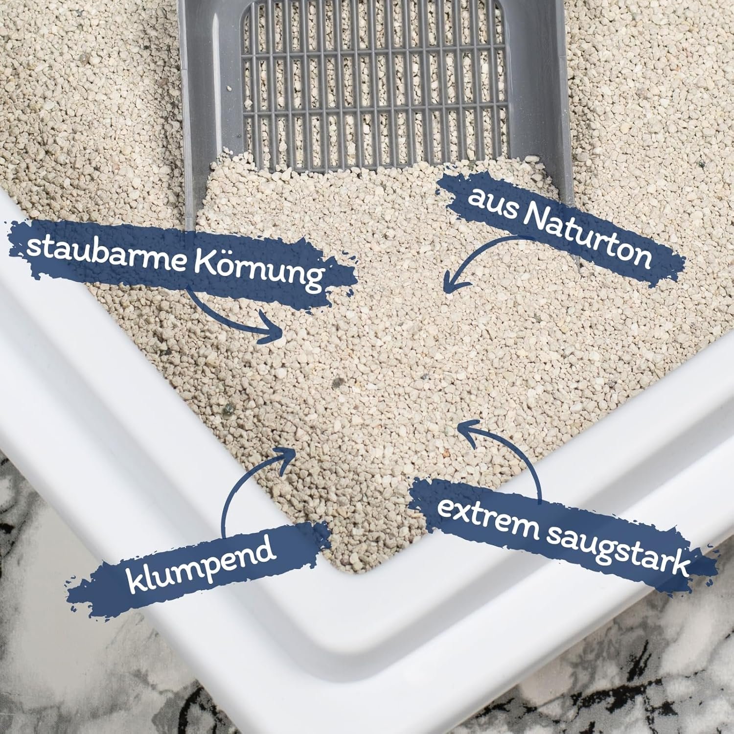 Unser Katzenstreu ist ein sehr saugstarkes und reines Naturprodukt aus Naturton (Bentonit).
