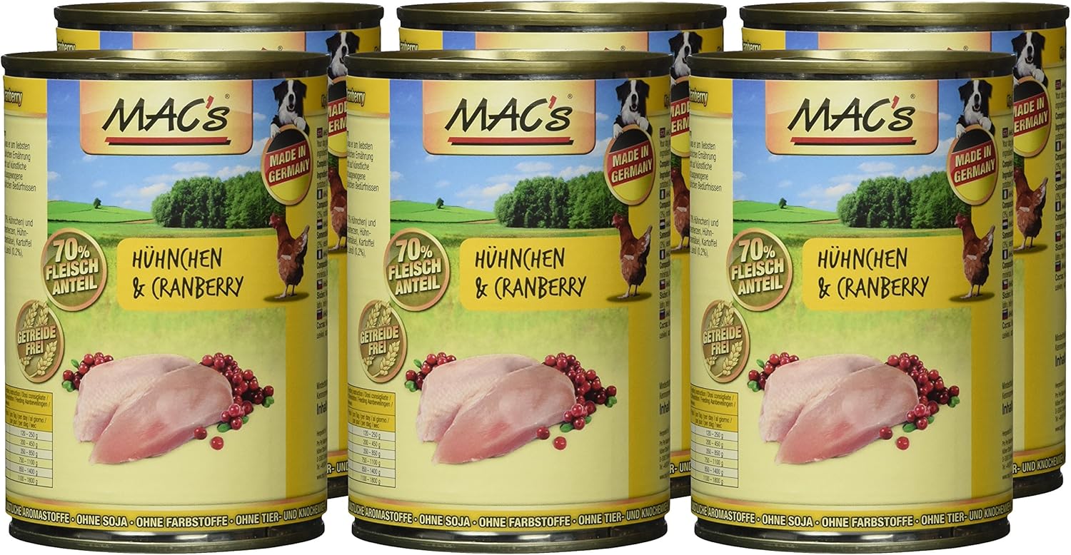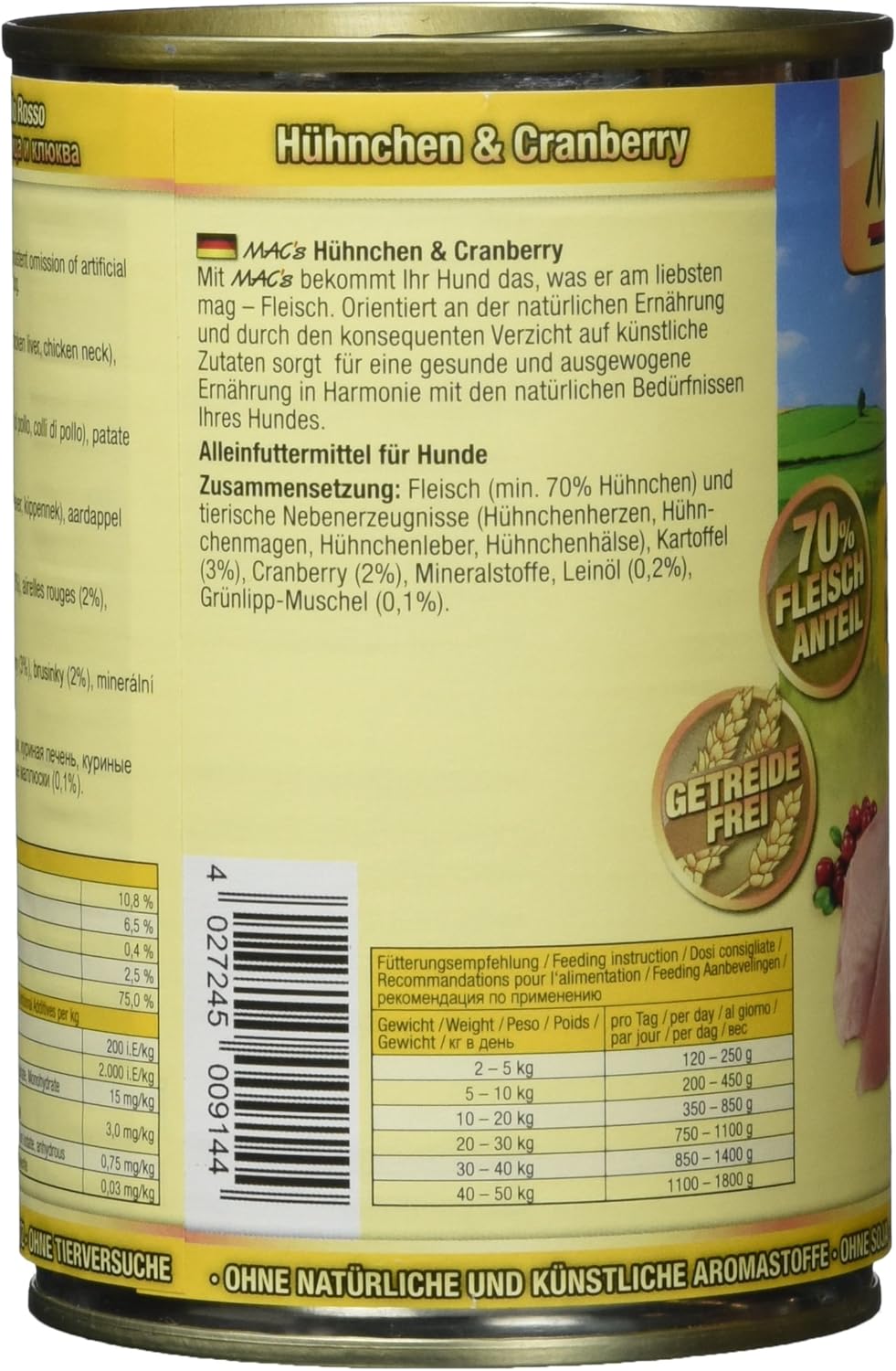 Mac’s Hundefutter ohne Getreide, Huhn und Cranberry, 400 g
