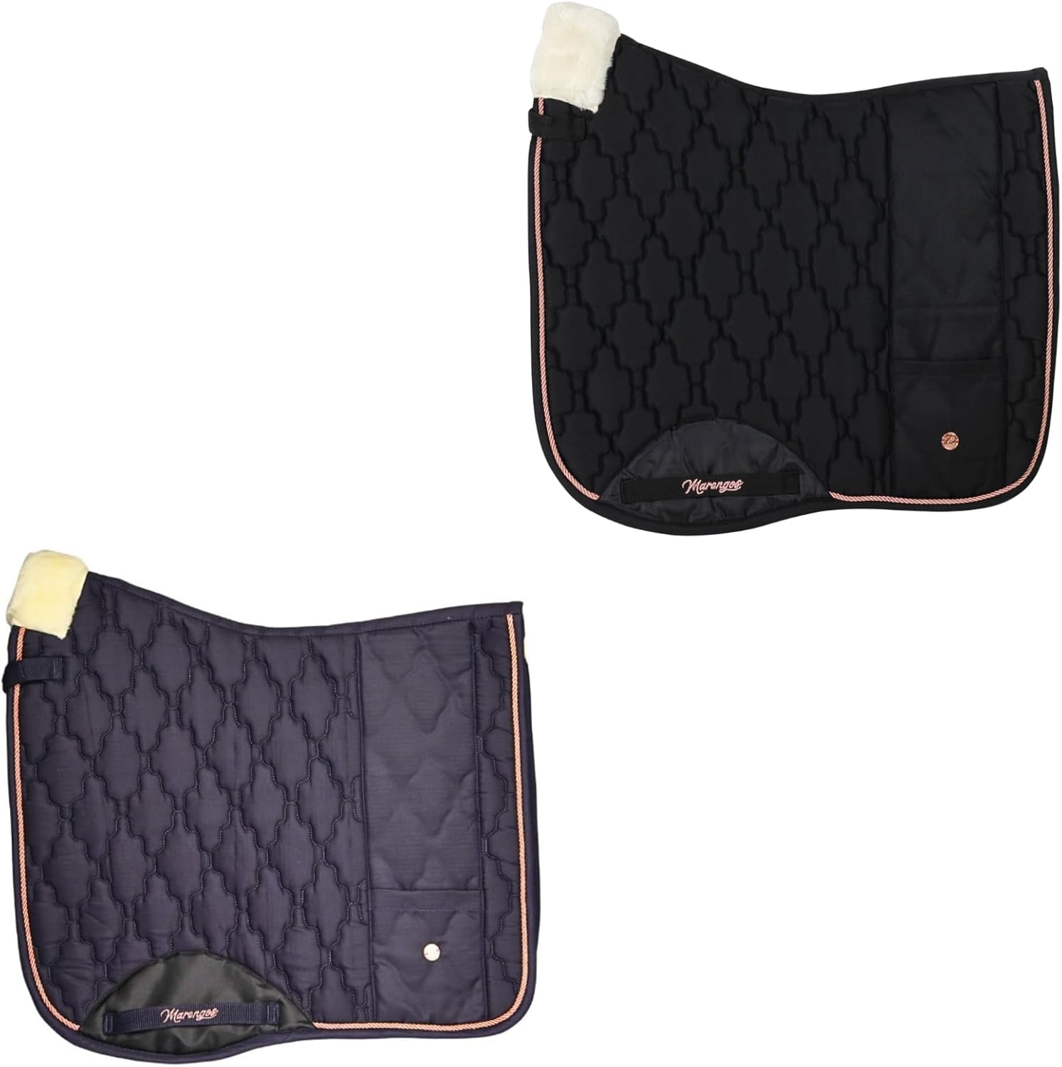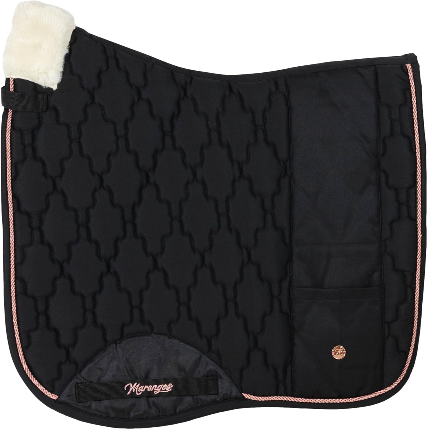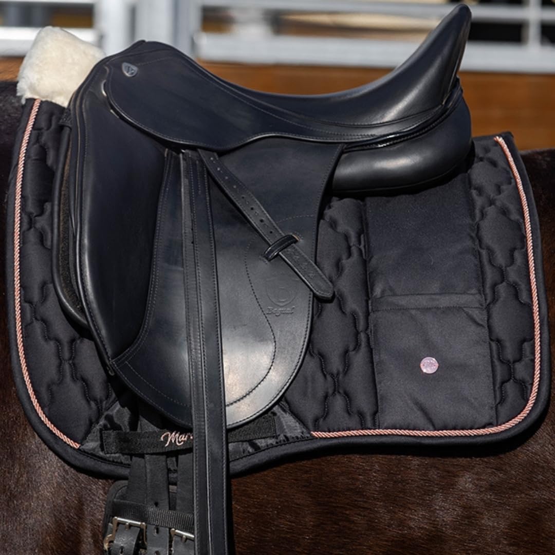 Schabracke: Anatomisch geformte Schabracke mit Schaumstoff- und Polyesterwattefüllung, weiche Widerristpolsterung, Gürtelschlaufen, florale Steppung, Zierkordel und kleine Tasche