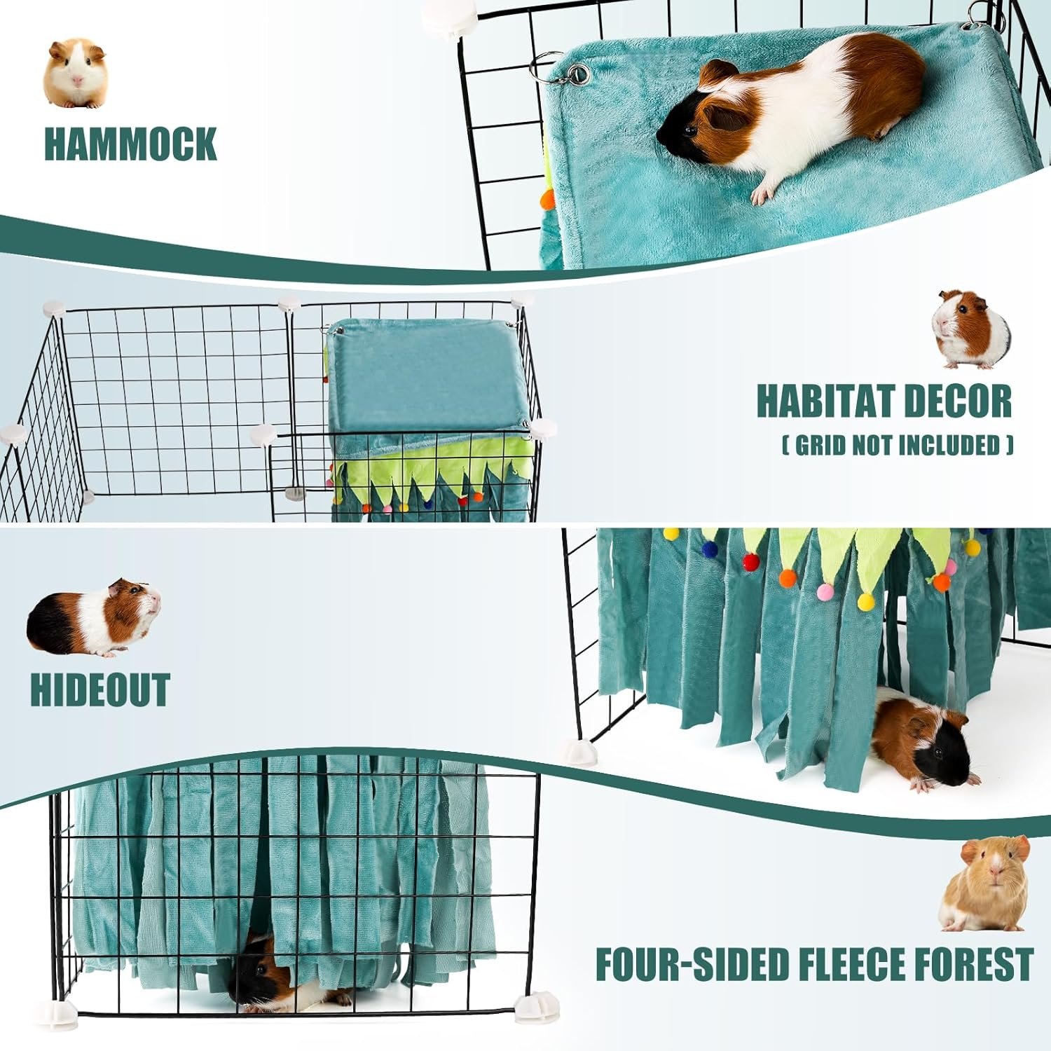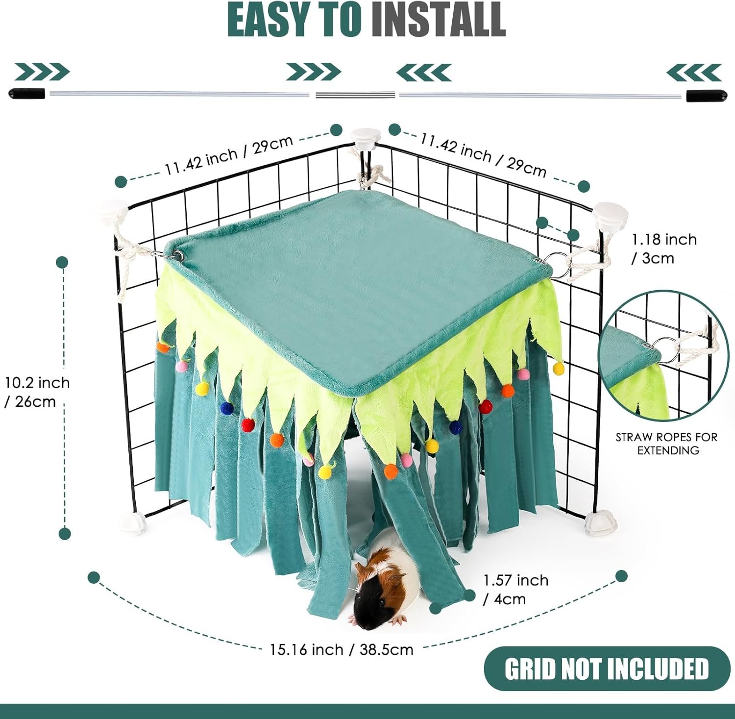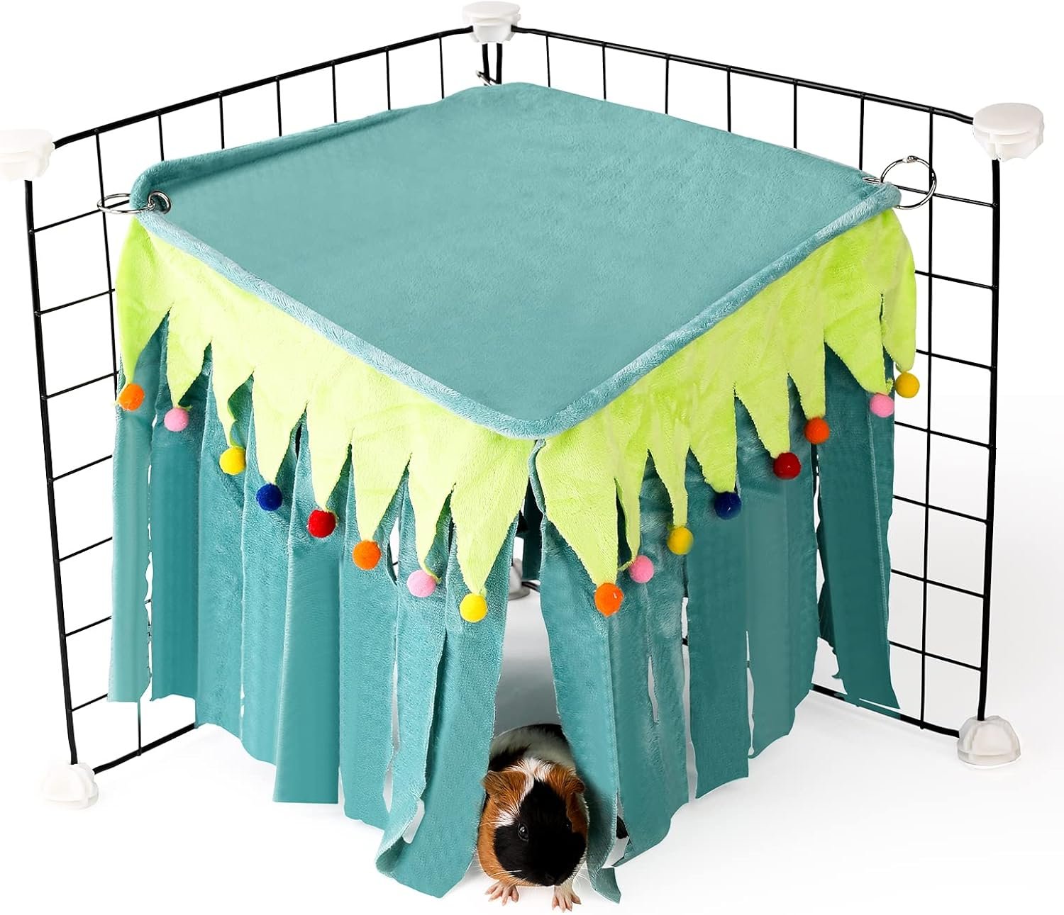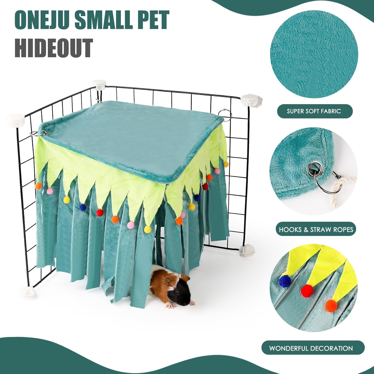 ONEJU Meerschweinchen-Versteck, Quadratisches Versteck für Meerschweinchen, 4-seitiges Kleintierversteck für Meerschweinchen, Kaninchen, Chinchilla, Frettchen, ohne Metallzäune. Spezifikation: Versteck für Meerschweinchen. Materialien: CrystalSuperSoft-Stoff, Meerschweinchenversteck, Farbe: Blau/Rosa/Grün, Meerschweinchenversteck, Farbkarte: Blau/Rosa/Grün. Die quadratische Oberseite des ONEJU-Meerschweinchenverstecks: 29 cm x 29 cm, Meerschweinchenversteck aus Fleece, Waldbreite: 4 cm, Meerschweinchenversteck, langlebige Hakenlänge: 3 cm. GuGuGuGuGuGuGuPaket beinhaltet: 1 x ONEJU Meerschweinchen-Versteck, 1 x kleiner abnehmbarer Stock mit 2 Gummipads, 3 x Edelstahlhaken, 3 x Strohseile, Gitter nicht im Lieferumfang enthalten