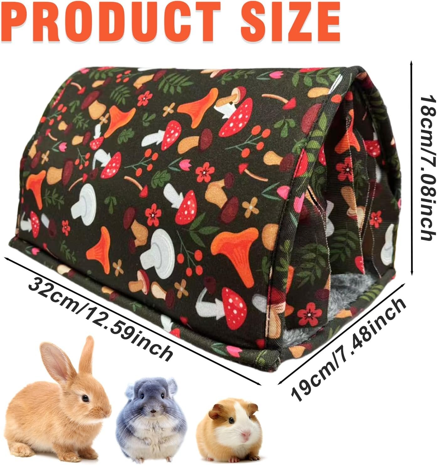 Optimale Größe für diverse Kleintiere: vergrößerte Maße von 32 x 19 x 18 cm. Bietet ausreichend Platz für Meerschweinchen, Kaninchen, Chinchillas oder Hamster. Die großzügige Innenfläche ermöglicht bequemes Strecken und entspanntes Dösen, während das tunnelartige Design genügend Raum für Bewegungsfreiheit und natürliches Versteckverhalten bietet