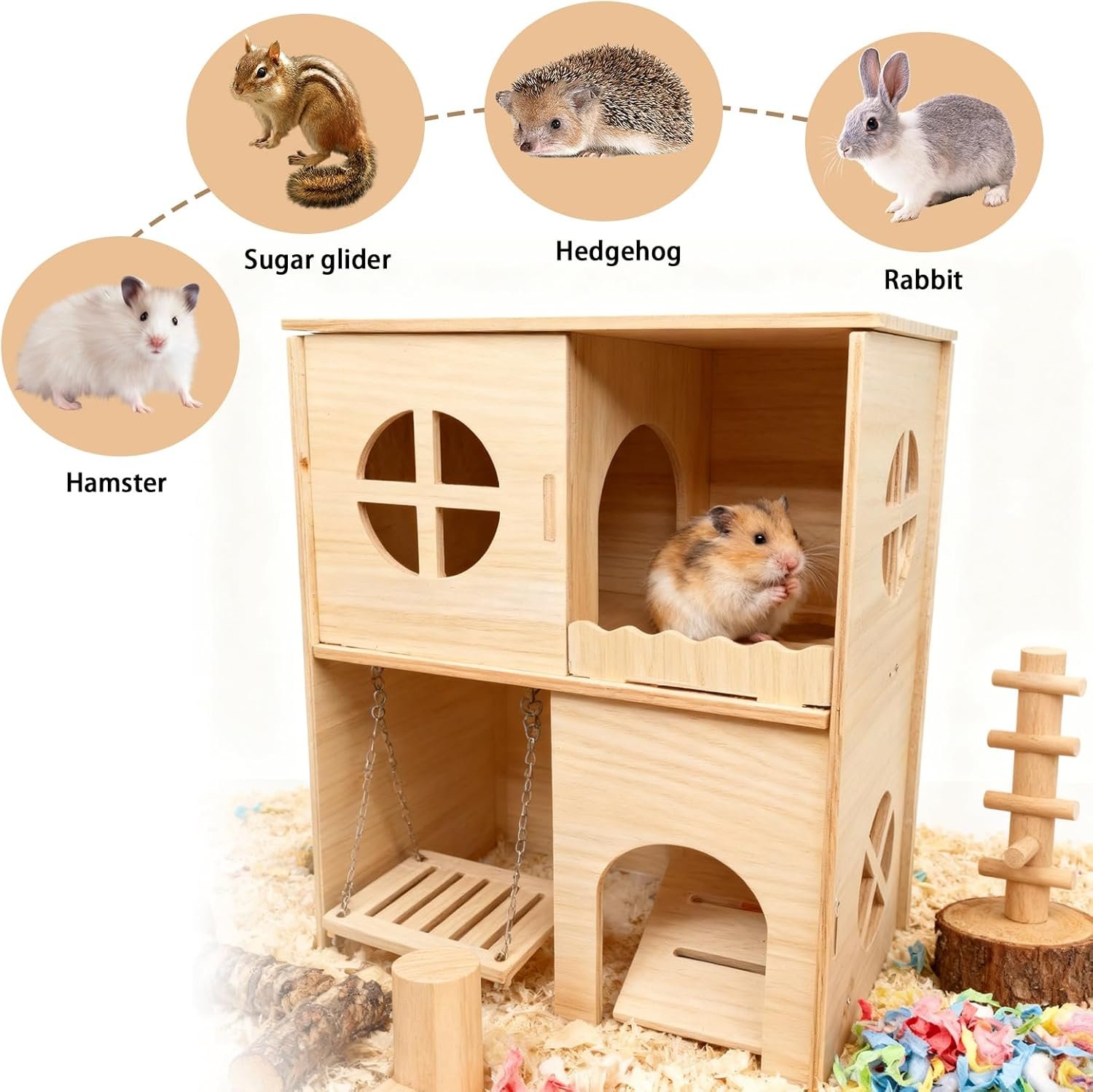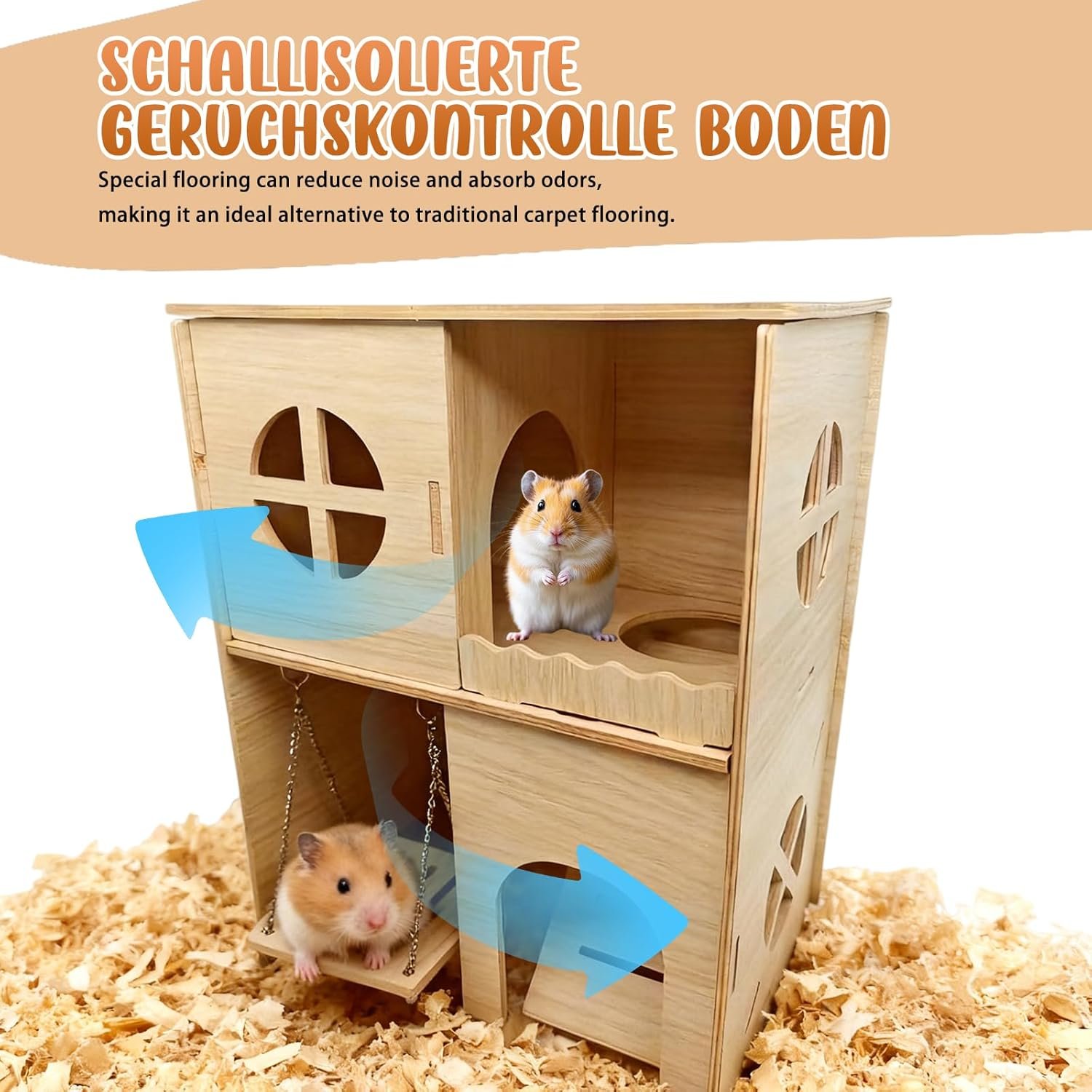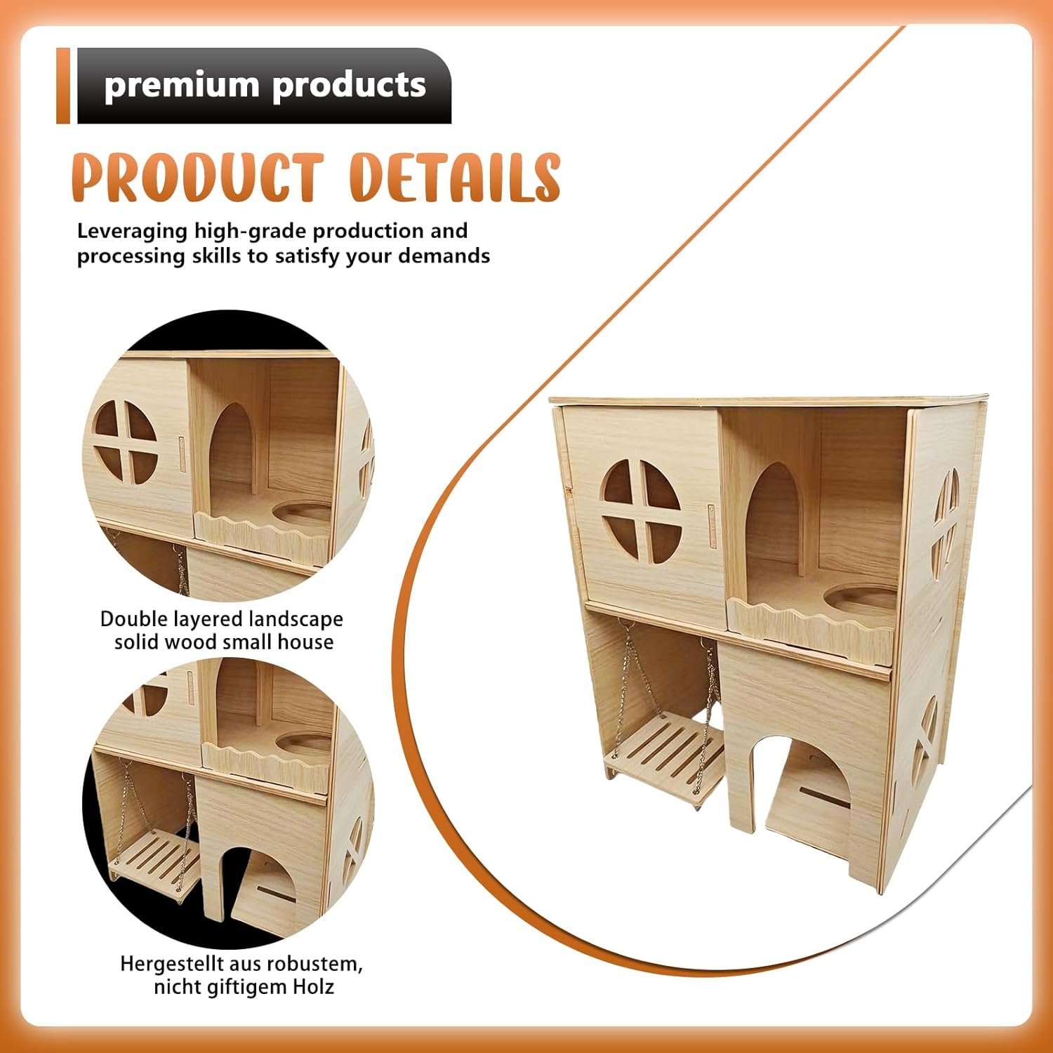 [Thoughtful Design] Dieses Meerschweinchenhaus aus Holz verfügt über eine innovative Schaukel und eine rutschfeste Rampe, die Ihrem kleinen Haustier einen sicheren Ein- und Ausstieg sowie Zugang zu Futter und Spielzeug ermöglicht. Dieses Hamsterhaus fördert die aktive Erkundung, beugt Langeweile vor, verbessert die Lebensqualität und erfüllt das natürliche Bewegungsbedürfnis Ihres Hamsters.