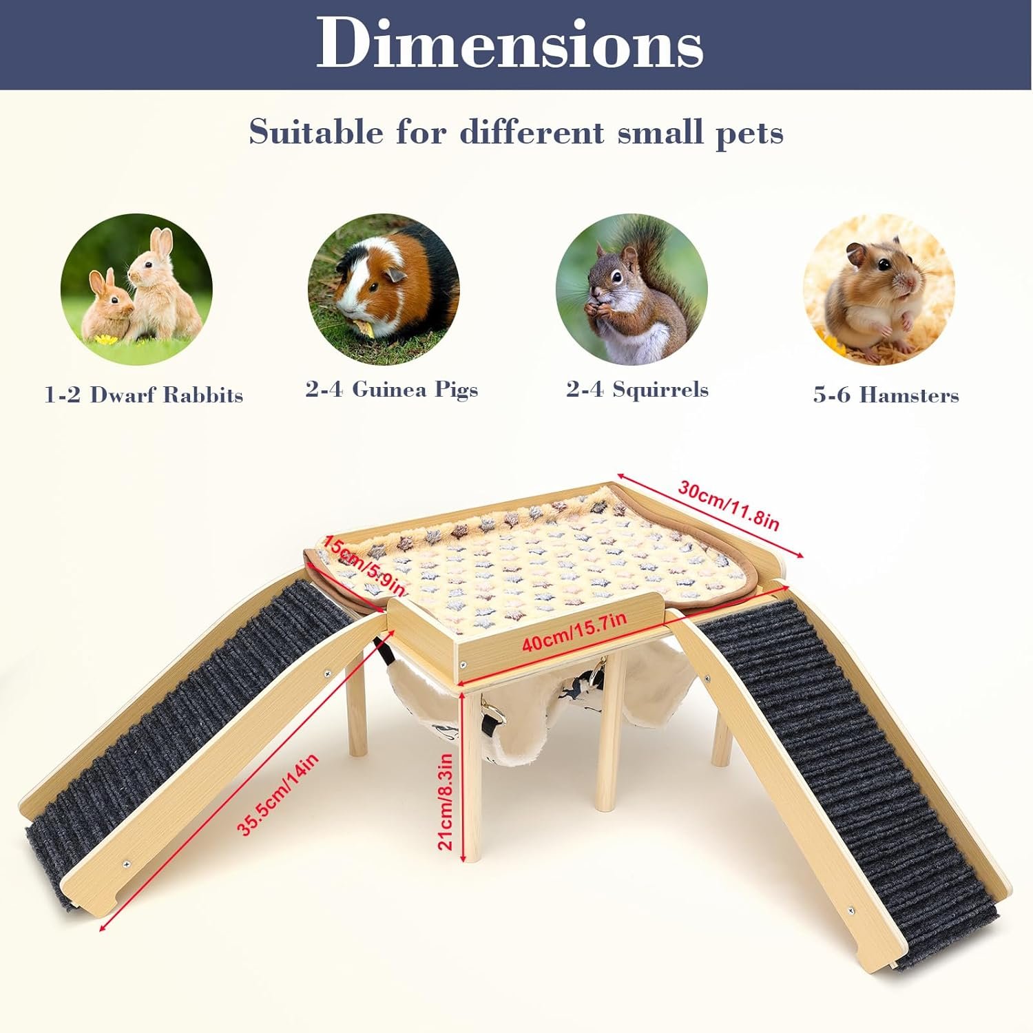 GROSSER SPIELTURM Dieses Meerschweinchenhaus verfügt über einen großen Dachboden (30 x 40 cm) mit einer weichen Matte, die Ihren kleinen Haustieren einen bequemen Schlaf- und Entspannungsort bietet