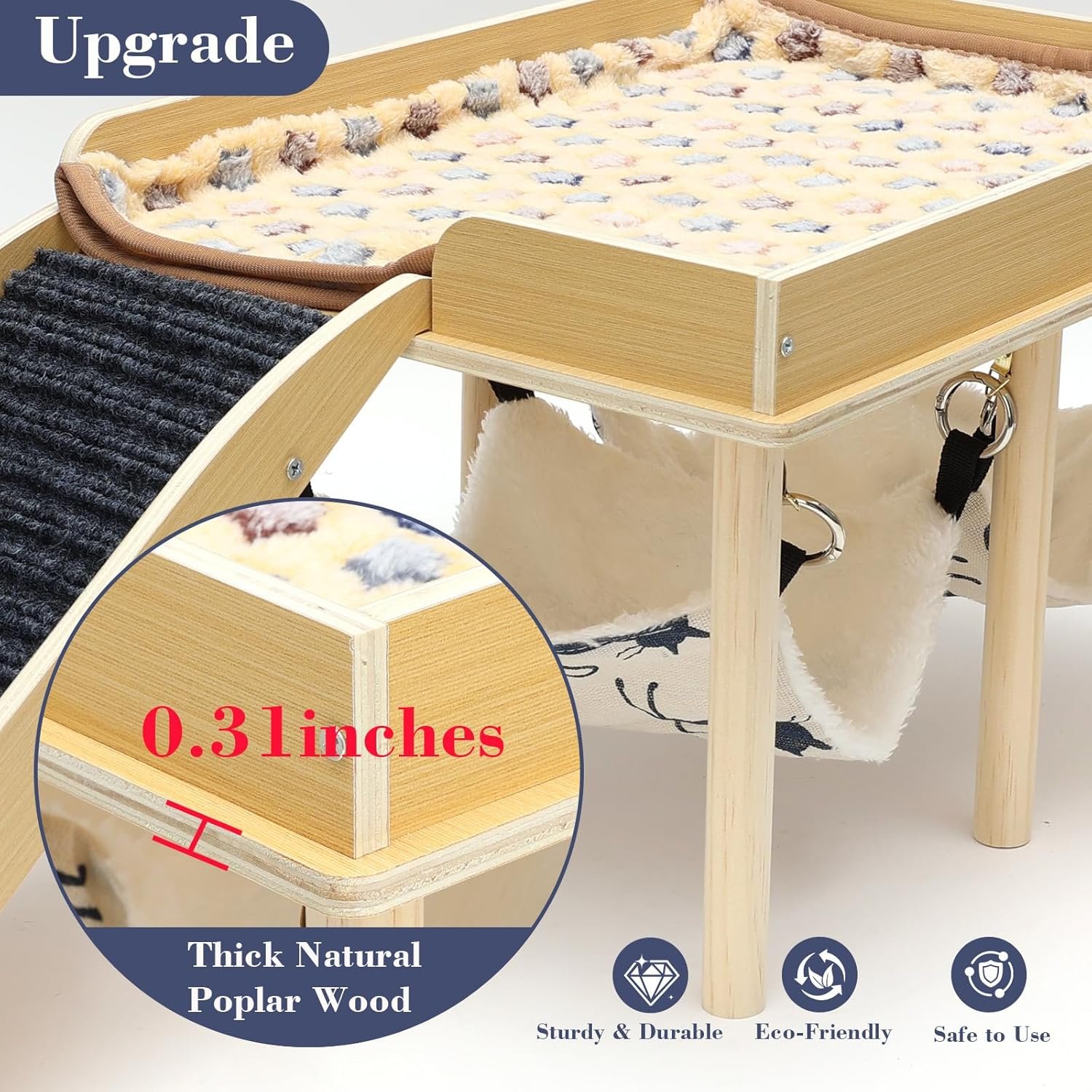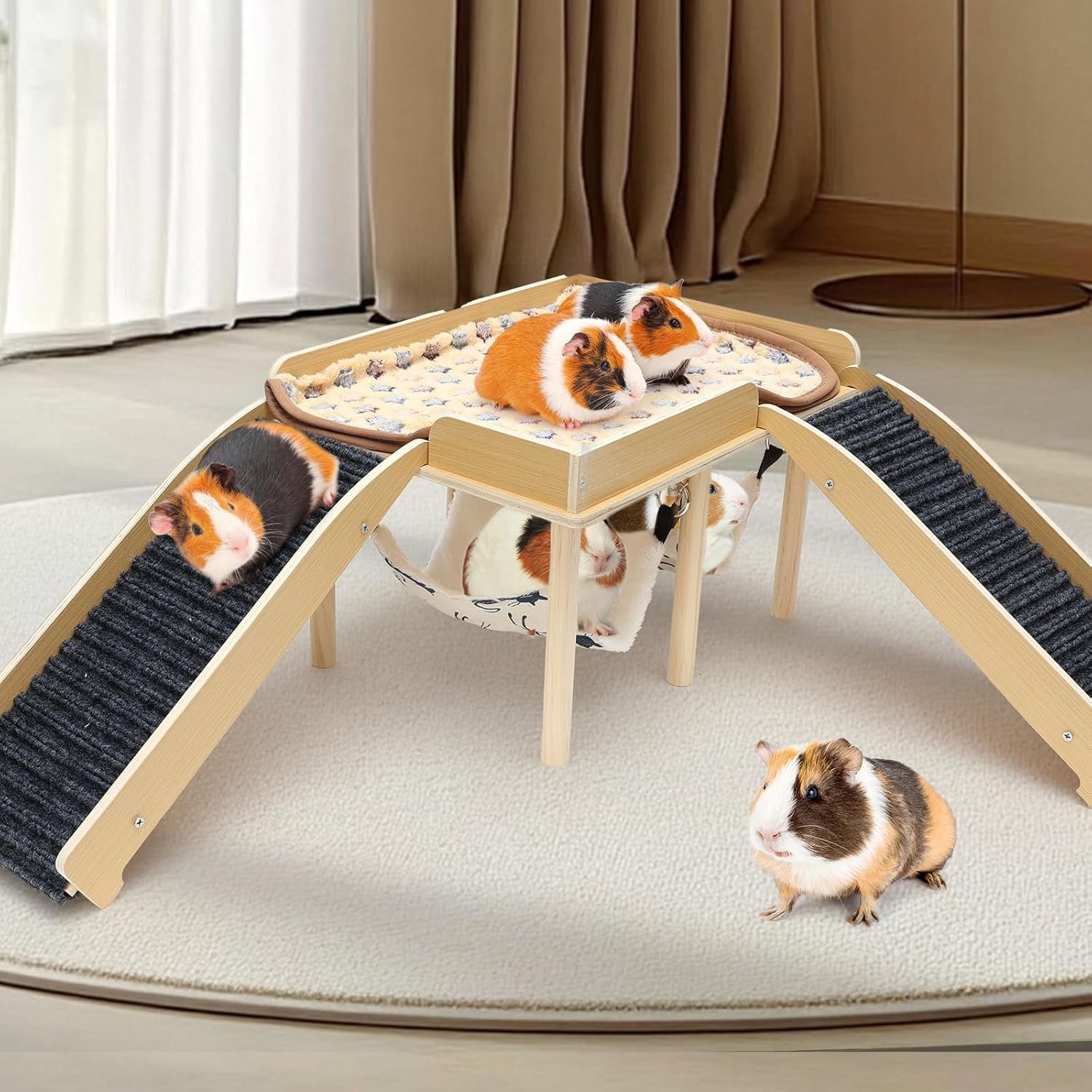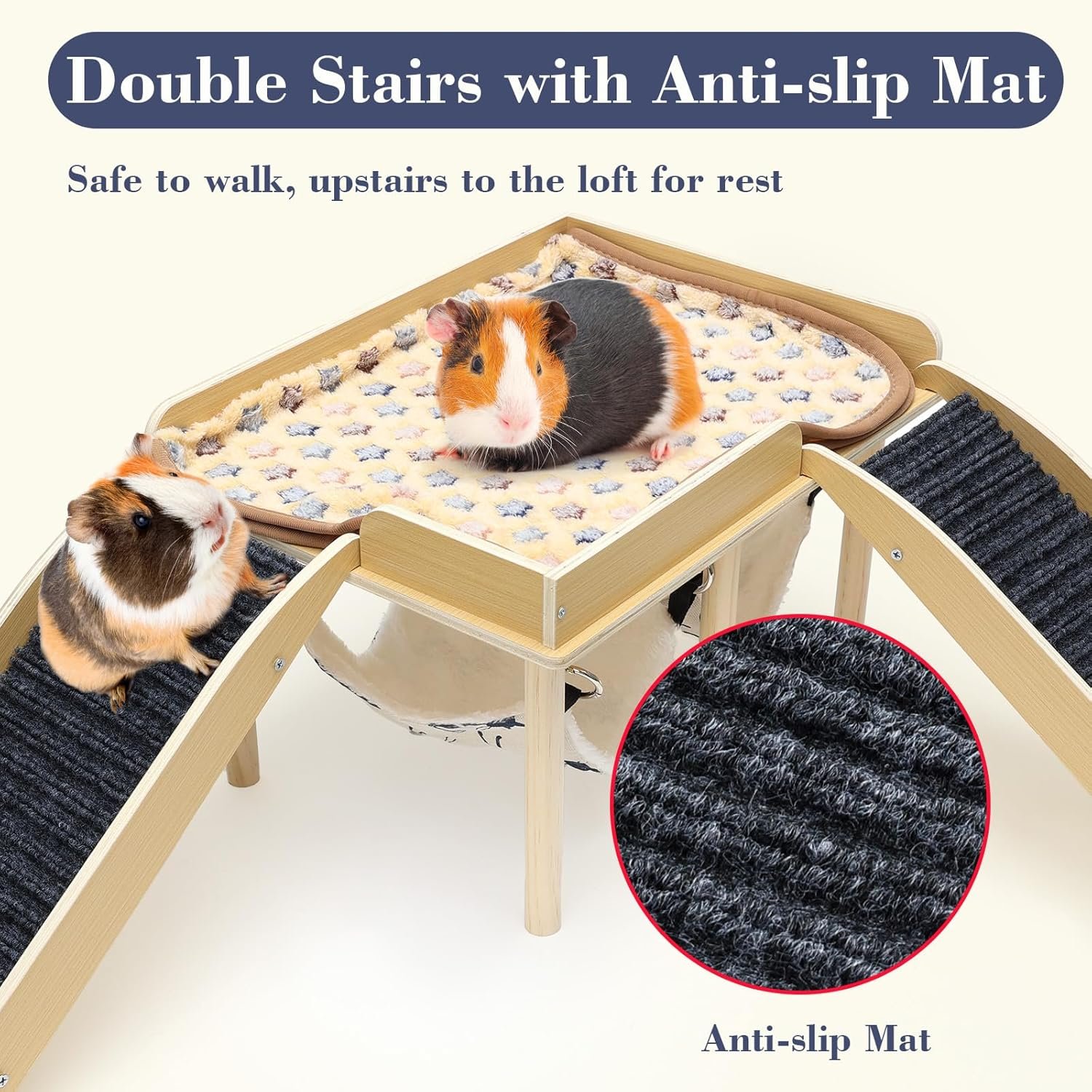VERBESSERTES DESIGN Mit 2 Treppen und 2 Hängematten bietet das GHWMYD-Meerschweinchenschloss Ihren kleinen Haustieren mehr Verstecke zum Verstecken, Schlafen und Entspannen. Die Treppen mit Antirutschmatte sorgen für zusätzlichen Bewegungs- und Steigraum, vertreiben Langeweile und verbessern die Stimmung