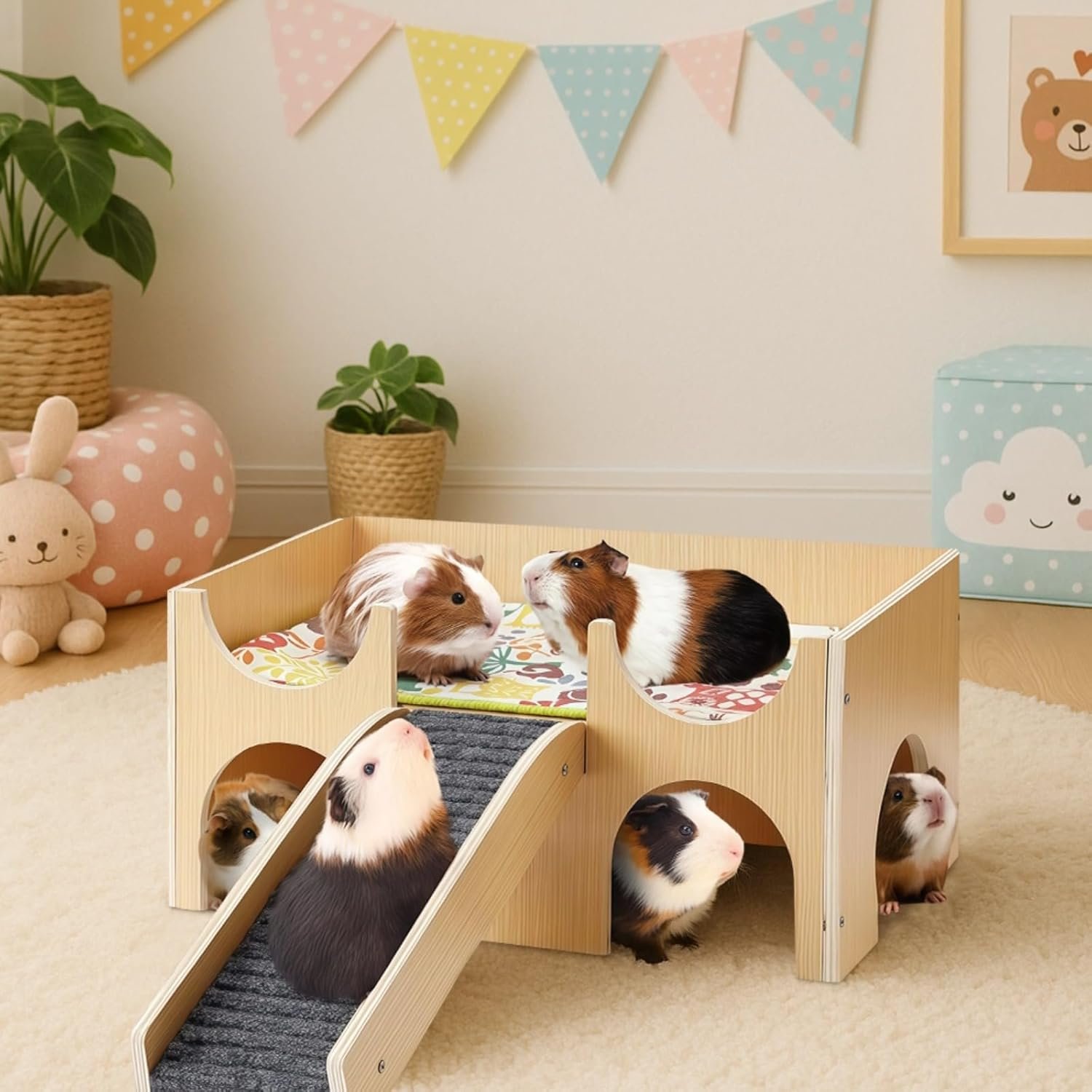 HYGIENISCH UND GERUCHSFREI: abnehmbares Design für mühelose Reinigung und hygienische Wartung; Naturholz hilft bei der Geruchsabsorption und sorgt für ein frisches Haustierumfeld; Durch die einfache Pflege bleibt Ihr Meerschweinchenstall unberührt