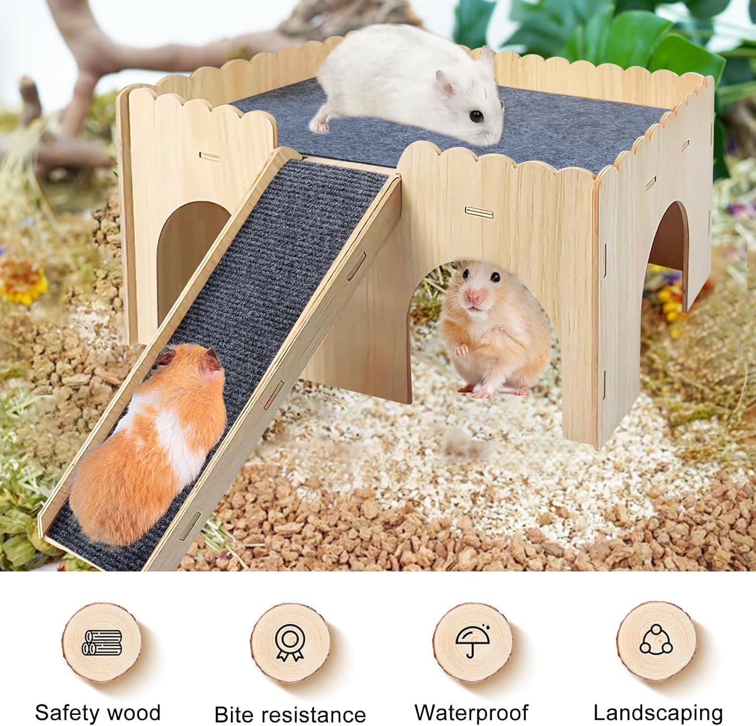 Das Hamsterhaus verfügt über ein zweistöckiges Design, das die natürlichen Spiel-, Kletter- und Versteckinstinkte Ihres Meerschweinchens fördert.