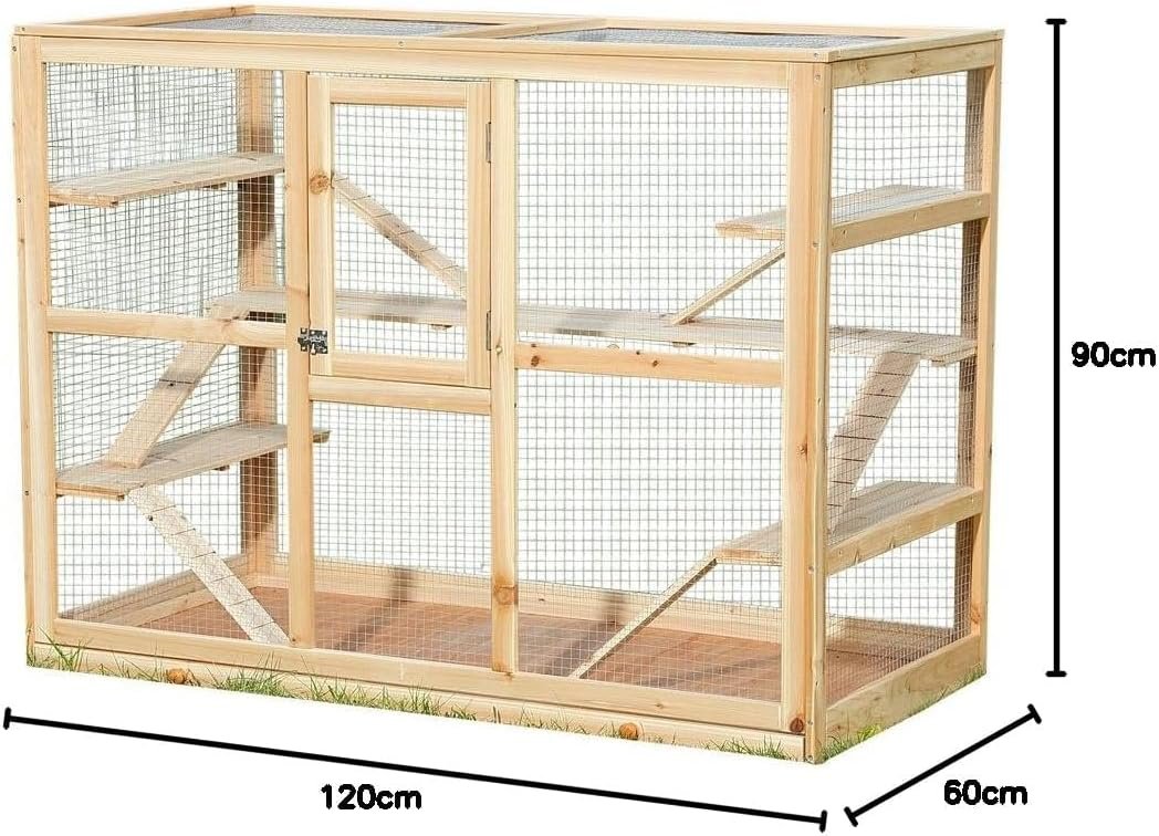 - Käfigmaterial: unbehandeltes Holz, sicher für Tiere und Drahtgeflecht.