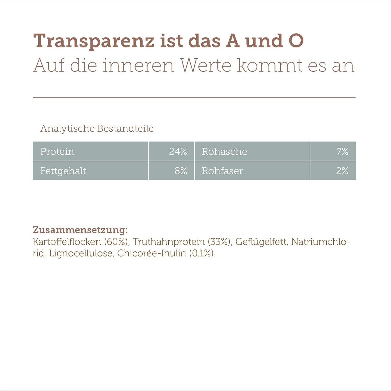 Genau der richtige Snack: Mit den knöchelförmigen Häppchen aus bekömmlichem Truthahn und bekömmlichen Kartoffeln machen Sie Ihrem Vierbeiner immer eine Freude und machen ihm gleichzeitig ein nährstoffreiches Lob