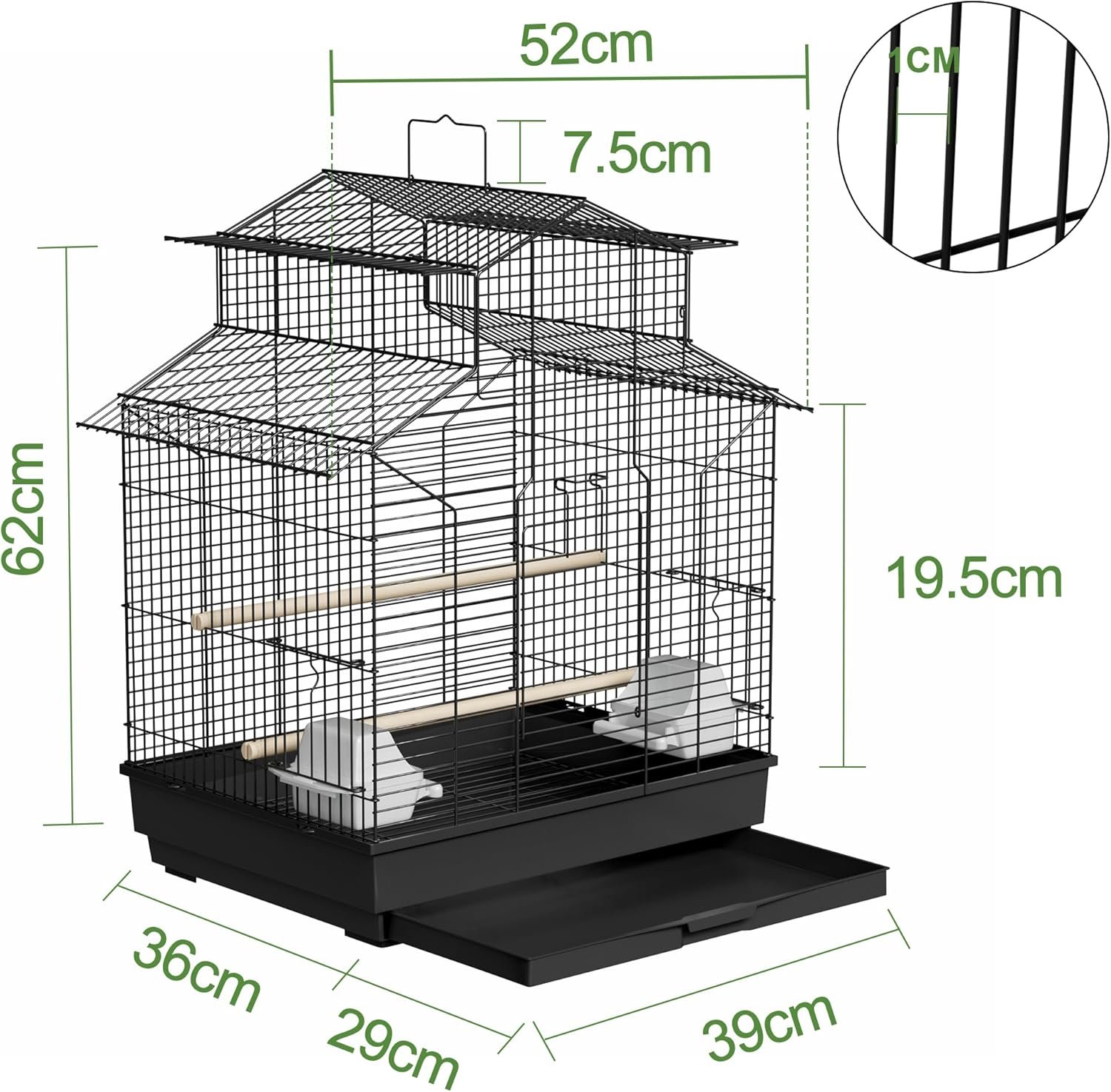 Mit seinem modernen, eleganten Design fügt sich der Vogelkäfig harmonisch in jedes Wohnambiente ein – und wird nicht nur zum funktionalen Unterschlupf, sondern auch zum dekorativen Blickfang in Ihrem Zuhause.
