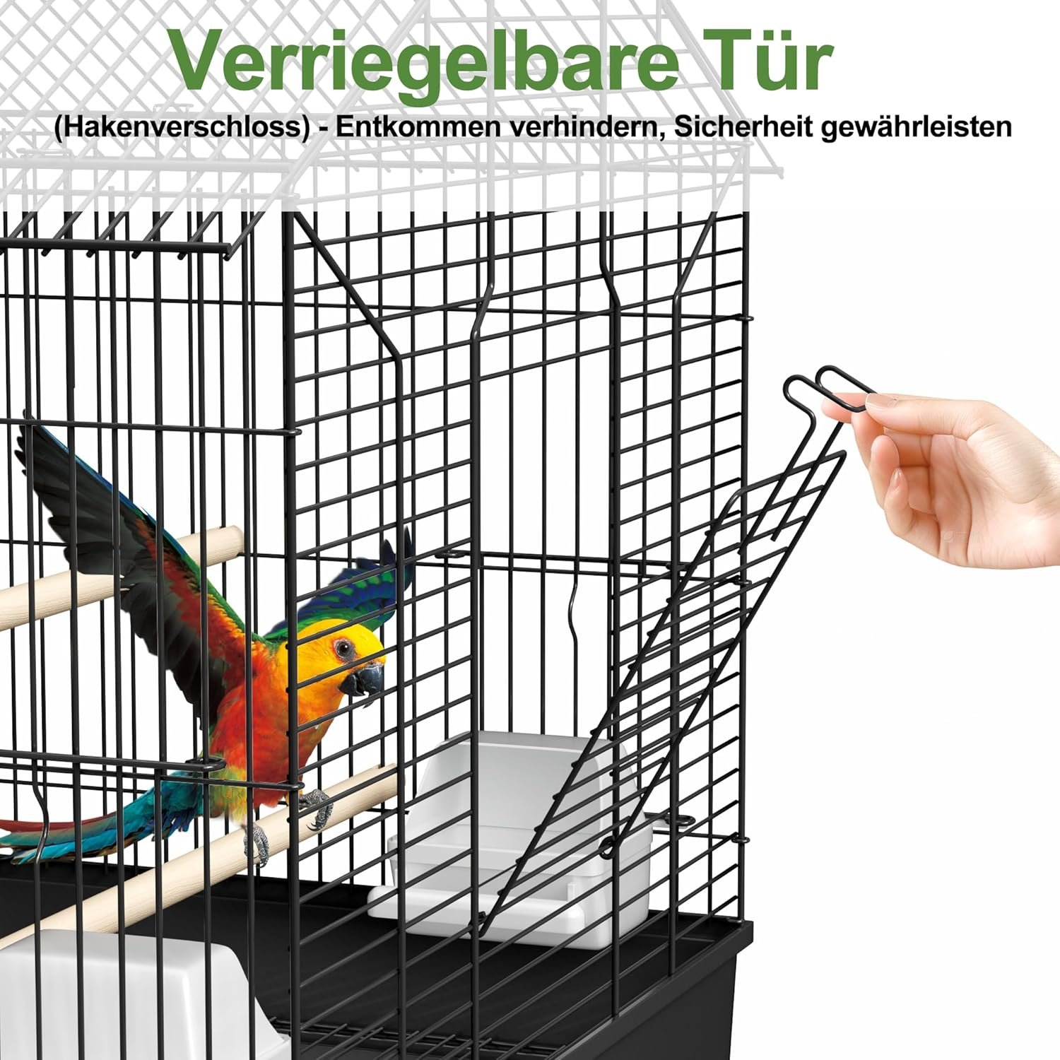 Maximale Sicherheit für Ihre Vögel: Unser Vogelkäfig aus robustem Metall mit verstärkten Gitterstäben bietet optimalen Schutz für Ihren Wellensittich oder Exoten. Das stabile Schließsystem verhindert ungewollte Stolperfallen und sorgt für ein sicheres Zuhause – ideal für alle, die ihren gefiederten Freunden eine dauerhaft geschützte Umgebung bieten möchten