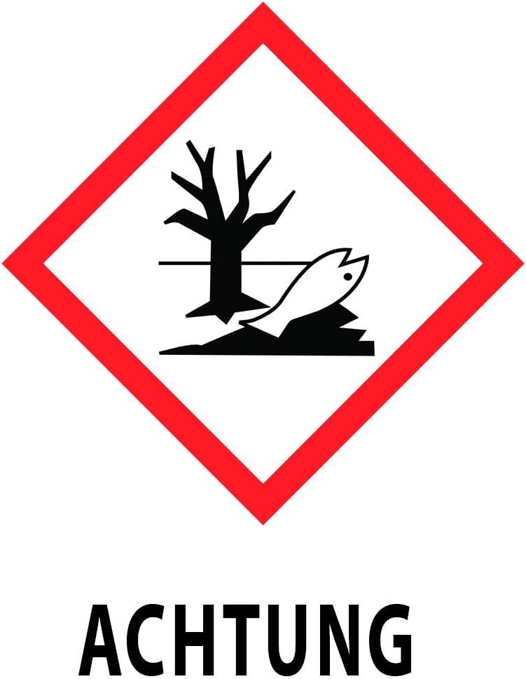 -P101: Ist ärztlicher Rat erforderlich, Verpackung oder Etikett bereithalten. -P102: Außerhalb der Reichweite von Kindern aufbewahren. -P103 Lesen Sie vor der Verwendung das Etikett. -P280 Schutzhandschuhe tragen. -P360 Kontaminierte Kleidung und Haut sofort mit viel Wasser waschen und dann die Kleidung ausziehen. -P301 + P312 bei Verschlucken: Bei Unwohlsein Giftinformationszentrum/Arzt anrufen. -P501 Inhalt/Behälter der Problemabfallentsorgung zuführen.