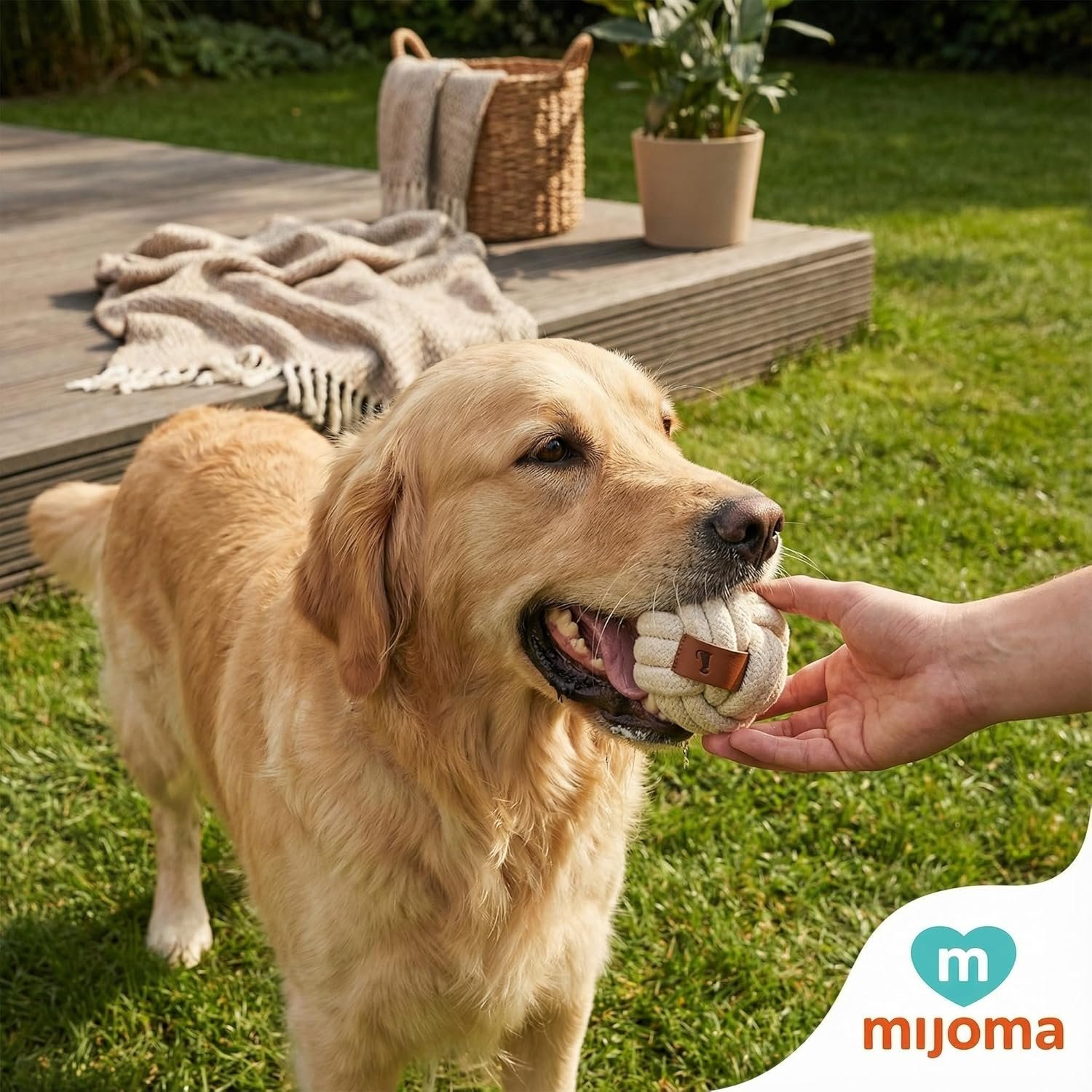 Ein Hundespielzeug, das Stil, Funktionalität und Haltbarkeit vereint – das ist der MIJOMA Knot Rope Ball. Wenn Sie auf der Suche nach einem robusten und dennoch stilvollen Spielzeug sind, das Ihrem Hund echte Freude bereitet, dann ist dieser Seilball genau das Richtige. Im Alltag mit Hund geht es um mehr als nur ums Spielen. Es geht um gemeinsame Erlebnisse, Training, Training und natürlich Gesundheit. Besonders Kauspielzeug spielt eine wichtige Rolle – es fördert die Zahnpflege, reduziert Stress und stärkt die Bindung zwischen Mensch und Tier. Der MIJOMA-Seilball wurde genau dafür entwickelt. Es besteht aus strapazierfähigem Polyesterseil, ist fest verknotet und so konzipiert, dass es dem kräftigen Kauen auch größerer Hunde standhält. Die strukturierte Oberfläche reinigt das Zahnfleisch sanft beim Kauen und hilft, Plaque zu reduzieren – ganz ohne chemische Zusätze. Doch der MIJOMA Knotenseilball ist nicht nur funktional. Sein natürliches, klares Design macht ihn zu einem stilvollen Begleiter im Alltag – ohne grelle Farben oder künstliche Materialien. Das kleine, eingearbeitete Lederetikett verleiht dem Spielzeug einen Hauch von Eleganz. Besonders Hundebesitzer, die sich bewusst für ein harmonisches Wohnumfeld entscheiden, werden diesen Look zu schätzen wissen. Ob beim Apportieren im Garten, beim Zerren auf der Wiese oder einfach beim Spielen im Wohnzimmer – dieser Ball bietet vielfältige Einsatzmöglichkeiten. Und das Beste: Es ist nicht nur ein Gewinn für den Hund, sondern auch für Sie als Halter. Denn hochwertige Materialien und eine sorgfältige Verarbeitung sorgen dafür, dass Sie lange Freude daran haben. Kein lästiges Umtauschen, kein Mikroplastik, kein Wegwerfprodukt – sondern ein nachhaltiger Begleiter im Hundealltag. MIJOMA steht für hochwertige, stilvolle Produkte, die das Leben mit Haustieren einfacher, schöner und bewusster machen. Dieser Knotenseilball ist ein kleines Stück Alltag – neu gedacht, besser gemacht.