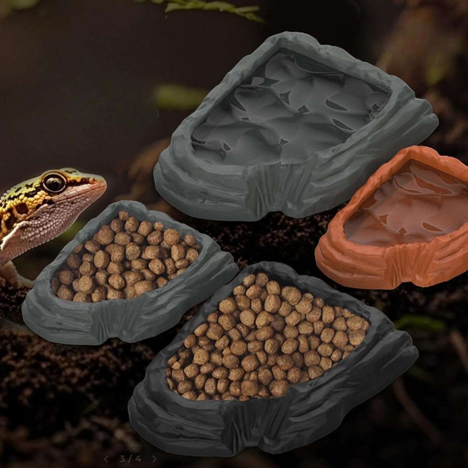 – 【Merkmale】: Der Futternapf für Reptilien verfügt über ein realistisches Schalendesign mit Steinstruktur, Felsformationen nachahmt und sorgt so für ein authentisches Habitat-Aussehen.