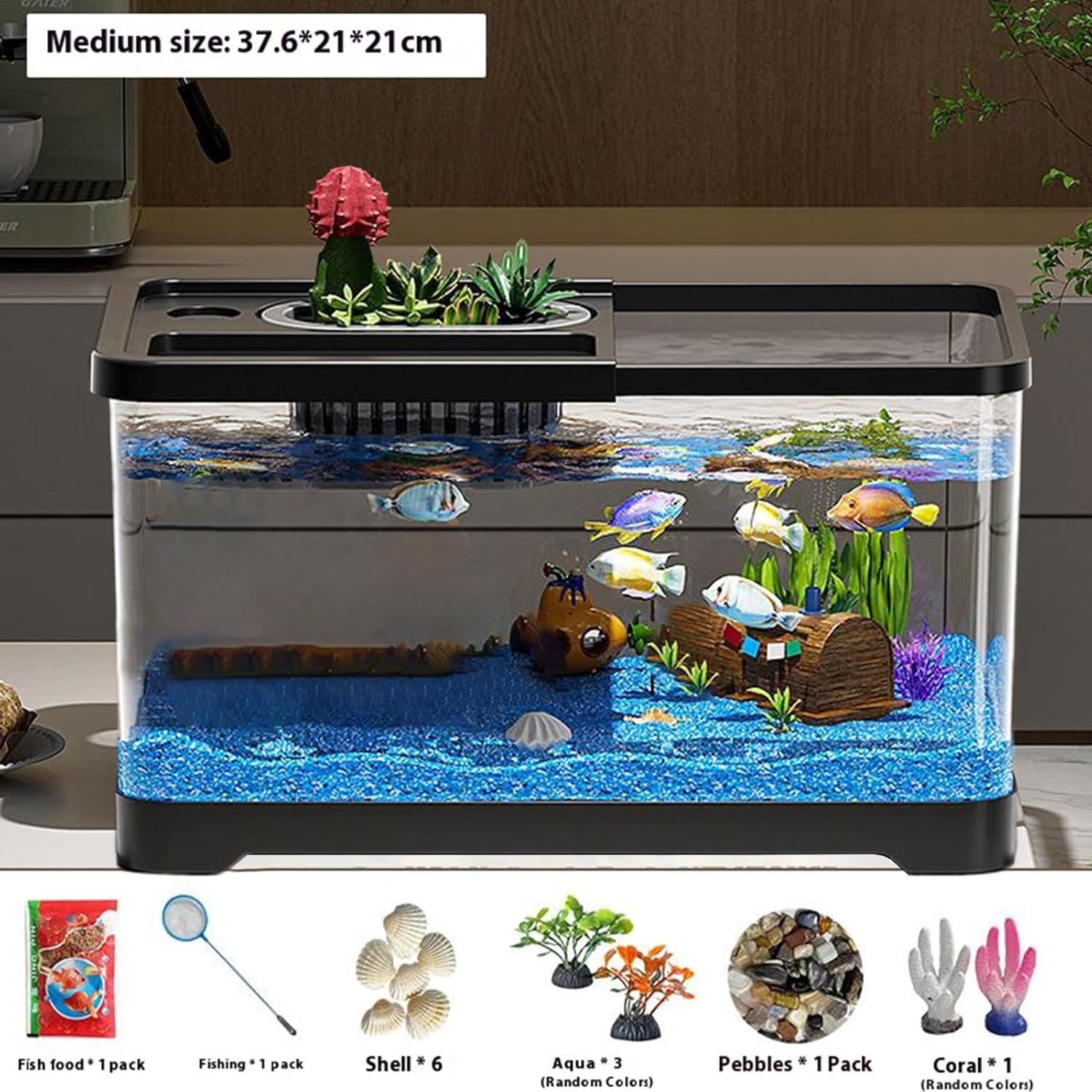 Bringen Sie Eleganz in Ihren Raum mit diesem hochtransparenten Aquarium-Starterset, das die Ästhetik jedes Raums verbessern soll. Das kompakte Design eignet sich ideal für Schreibtische, Kindergärten, Büros oder Studentenwohnheime, während die staubdichte Struktur für Übersichtlichkeit sorgt. Verwandeln Sie Ihr Wohnzimmer mit diesem dekorativen Aquarium-Set in eine ruhige Oase.