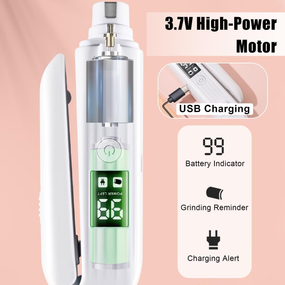Geräuschreduzierung und niedrige Dezibel: Der Motor des Haustier-Nagelschleifers ist auf Geräuschreduzierung optimiert, mit geringem Arbeitsvolumen und reibungslosem und leisem Betrieb. Es reduziert die durch Hochfrequenzgeräusche verursachten Störungen für Katzen und Hunde und verbessert den Komfort beim Nägelschneiden.