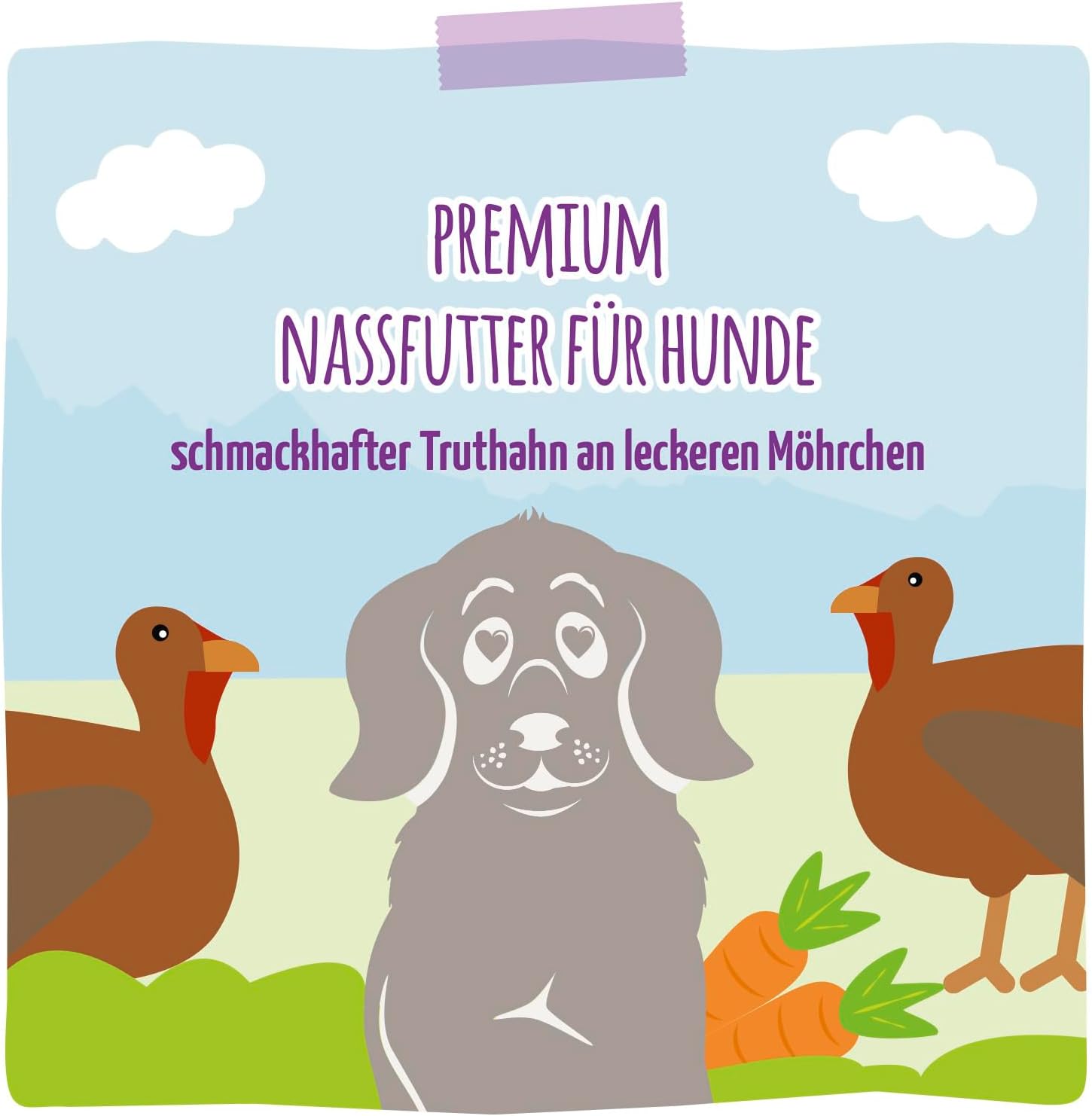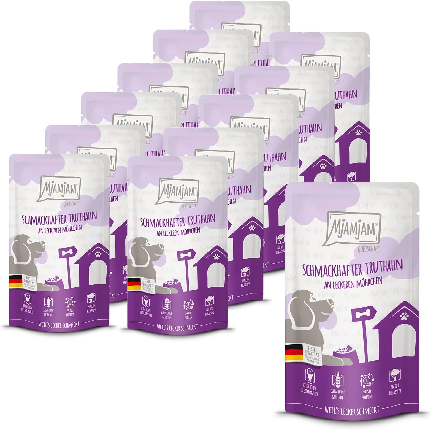 MjAMjAM – Premium Nassfutter für Hunde – Quetschie – Leckerer Truthahn auf leckeren Karotten, 12er Pack (12 x 125 g), getreidefrei mit extra Fleisch