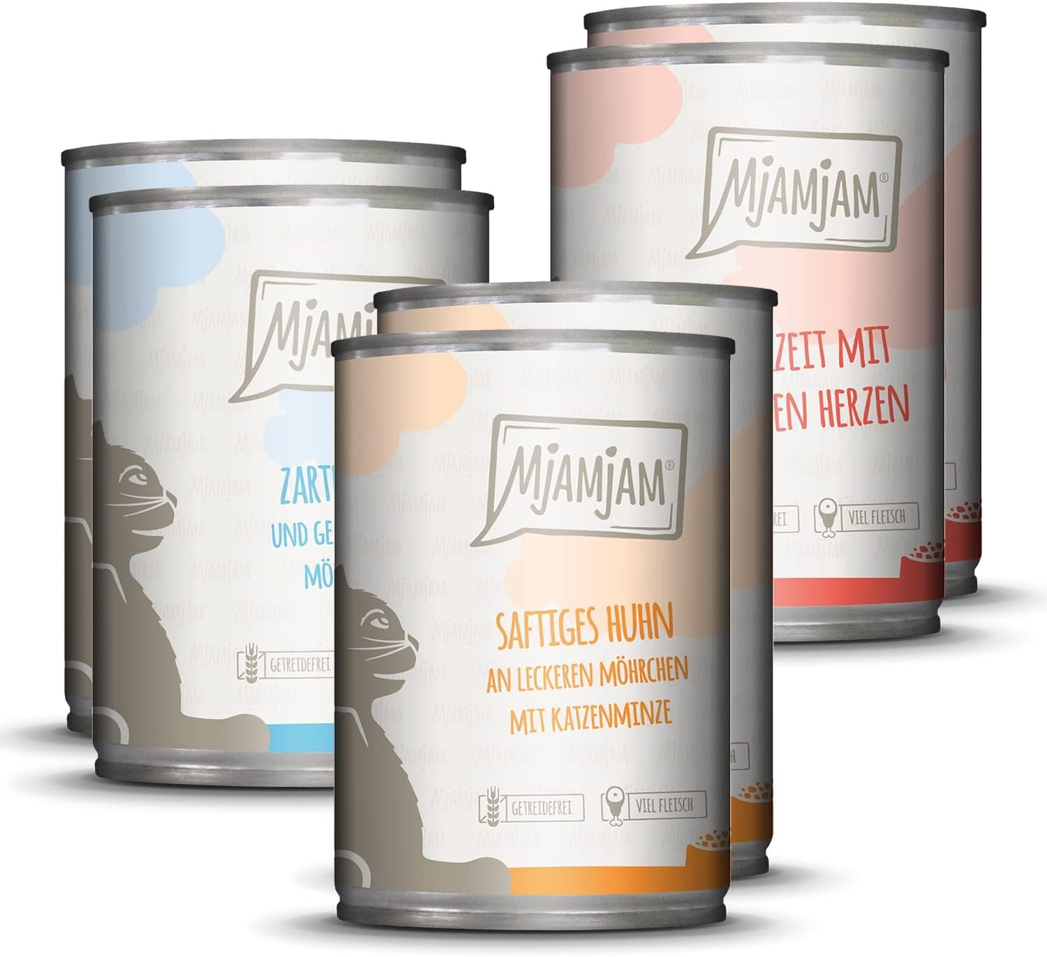 MjAMjAM – Premium-Nassfutter für Katzen – Probierpaket mit 6 Stück (6 x 400 g), getreidefrei mit extra Fleisch