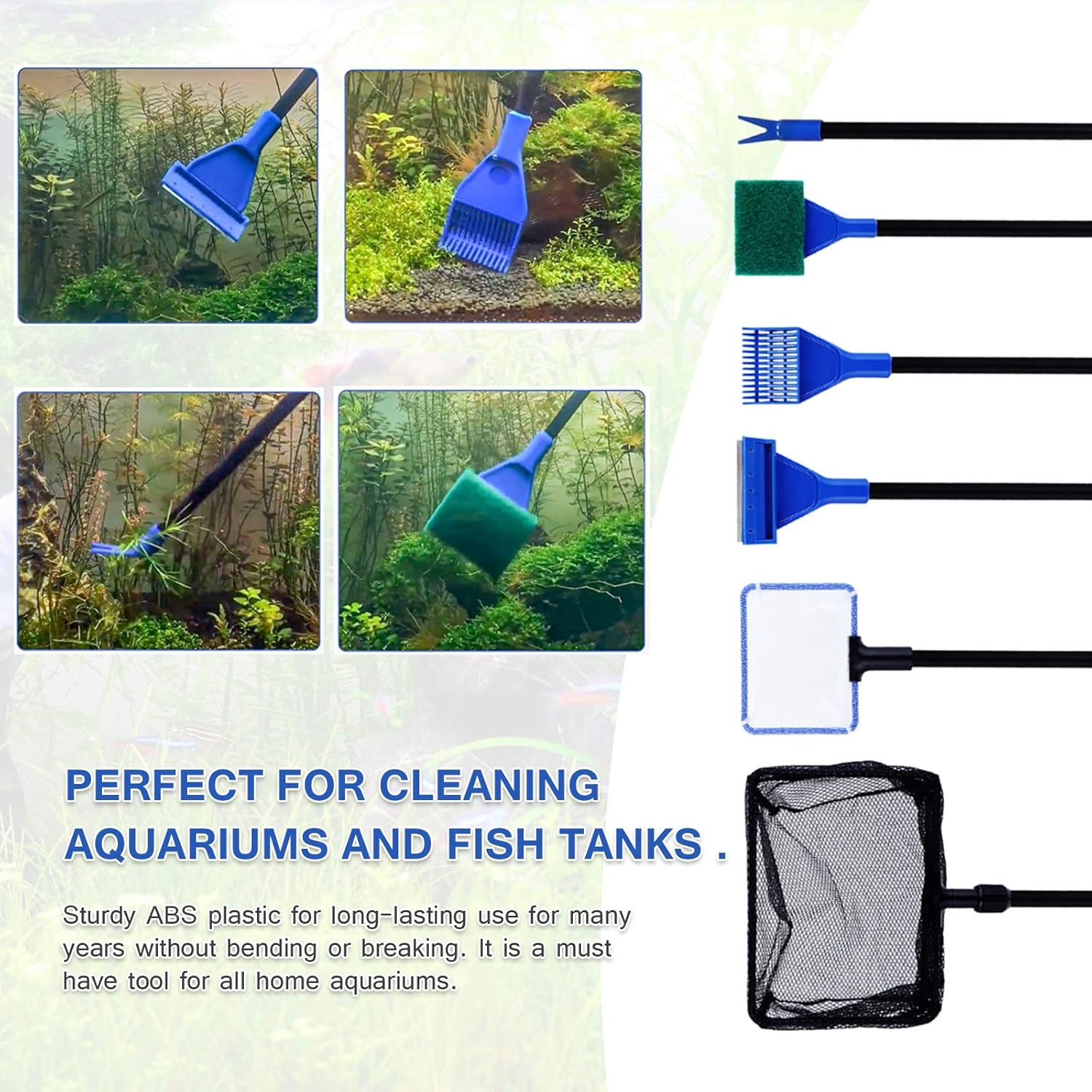 UMFASSENDE ABDECKUNG: One-Stop-Lösung für Aquarienreinigungsprobleme, keine Notwendigkeit, andere Werkzeuge separat zu kaufen. Sicher und geschützt: Sicheres Material, schützt Aquarienleben und erhält das ökologische Gleichgewicht.