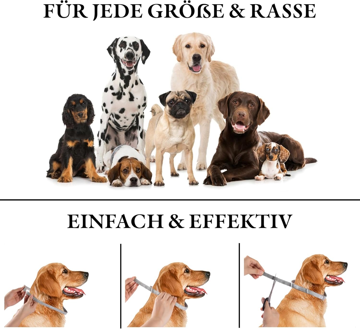 Für jede Größe geeignet: Mit einer festen Gurtlänge von 64 cm passt das Zeckenhalsband für Hunde kleinen und großen Hunden gleichermaßen, lässt sich leicht anlegen und optimal anpassen.