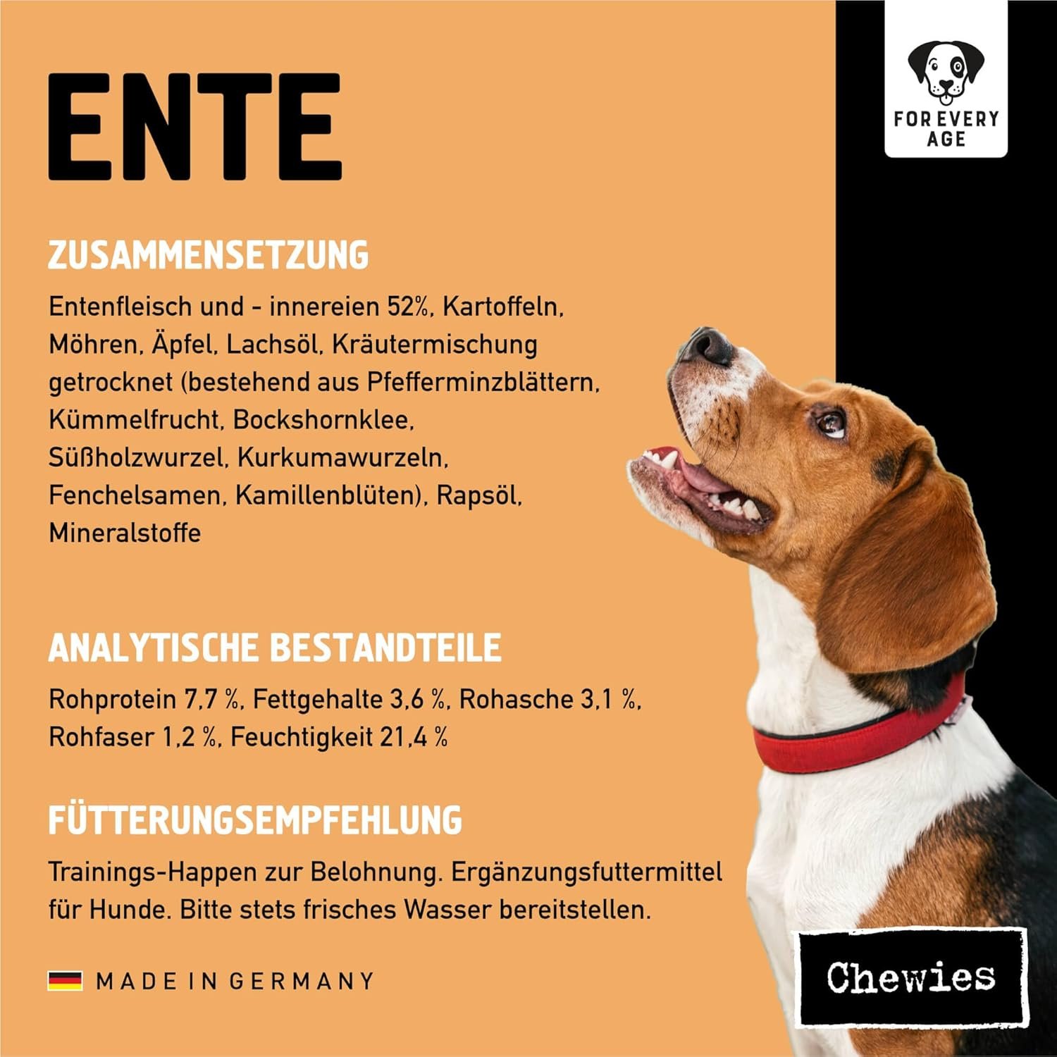 Sehr beliebt: Der Leckerbissen aus Entenfleisch ist dank der weichen Konsistenz für jeden Hund geeignet – vom Welpen bis zum Senior. Ihr Haustier wird von dem neuen Trainingsleckerli begeistert sein