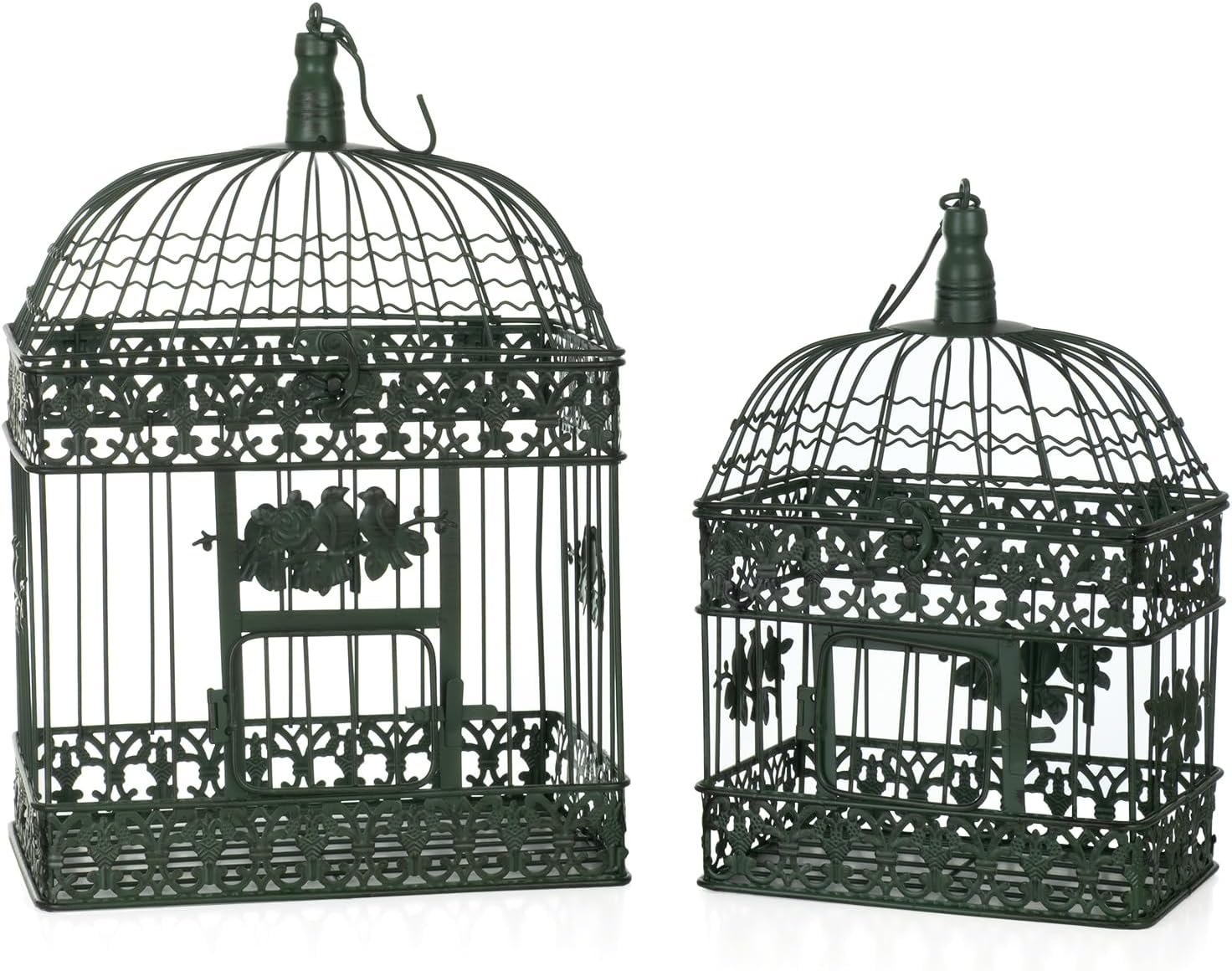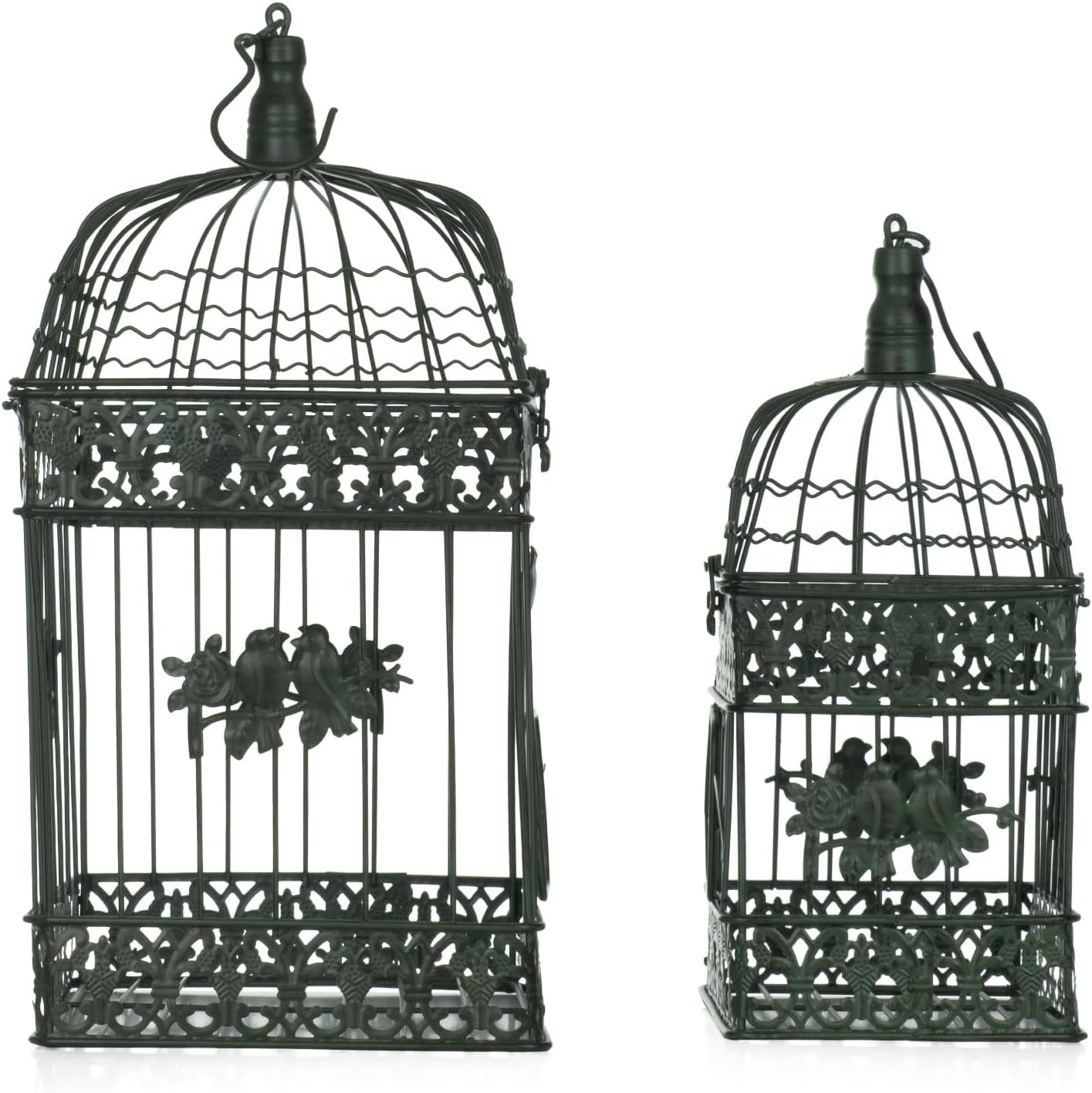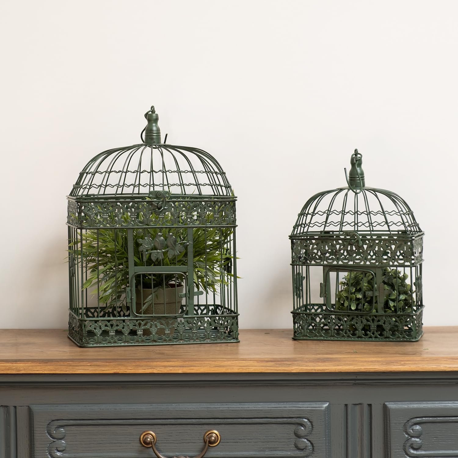 2er-Set Dekokäfige im Vintage-Stil aus Metall in Altgrün – ideal als romantische Dekoration für Haus, Garten, Hochzeit, Party oder saisonale Gestaltung