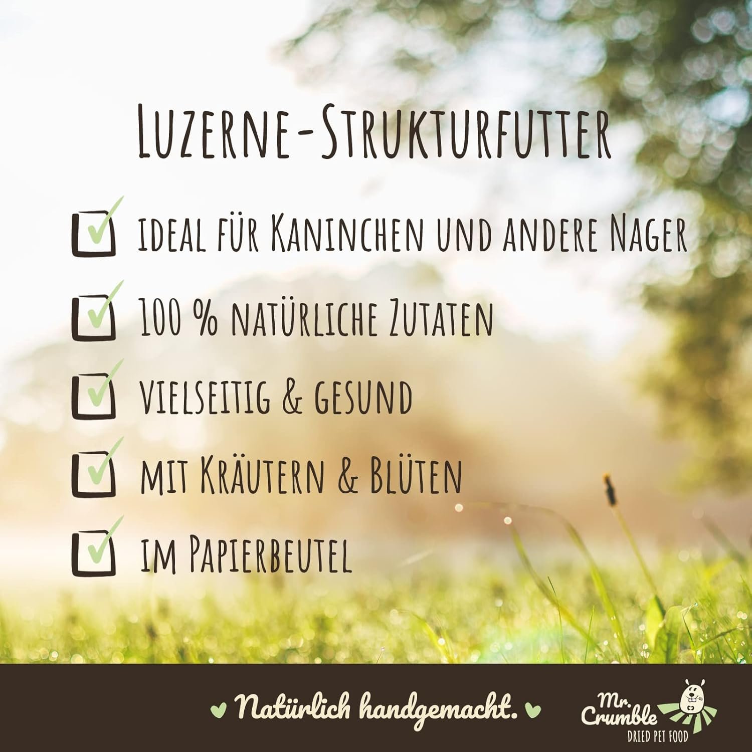 Mr. Crumble Textured Alfalfa-Leckerei für Kaninchen, Meerschweinchen, Luzerne, 1000 g