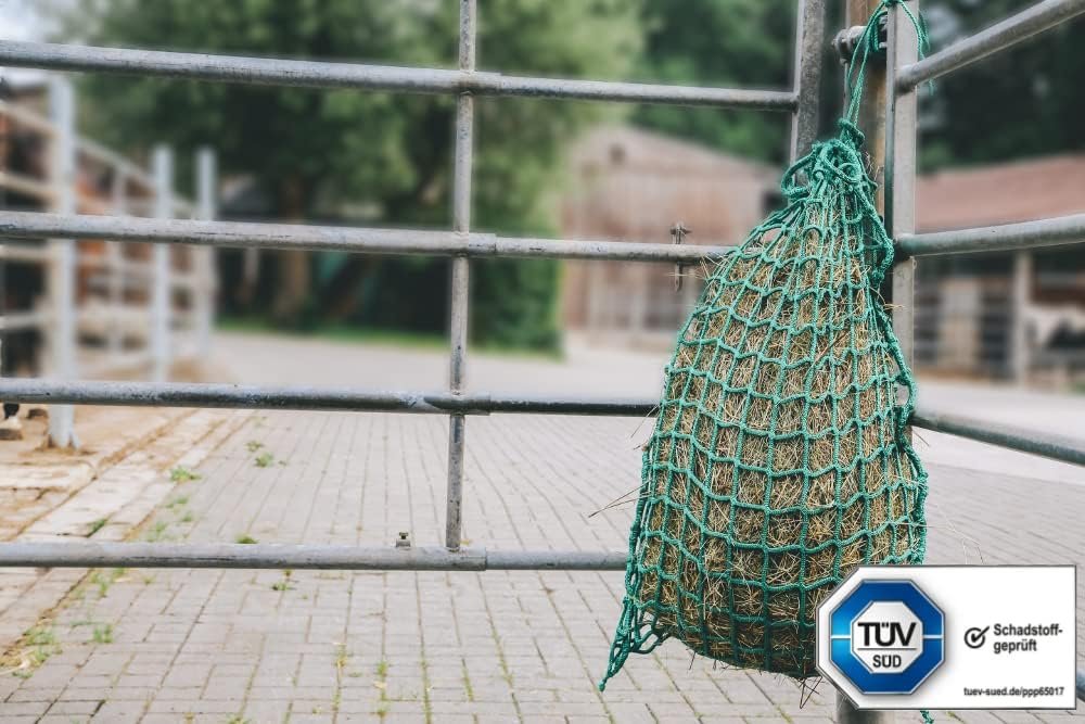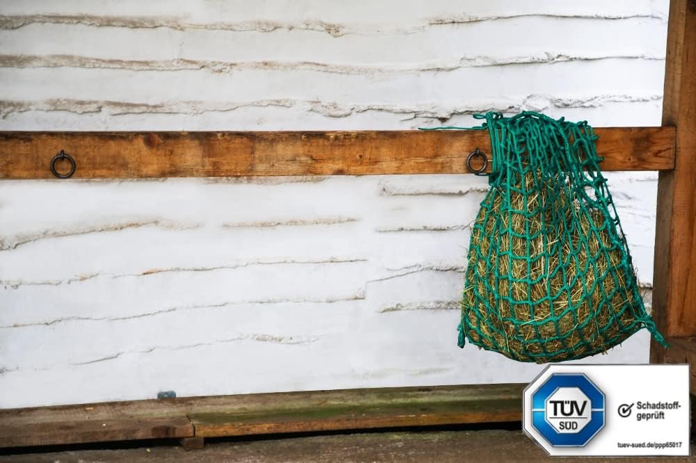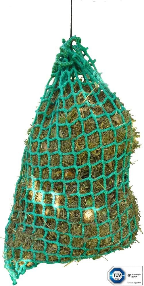 Abmessung: Breite 0,75m, Füllhöhe 1,0m Maschenweite: max. 3,3 cm innen im gespannten Zustand Kordelstärke: 5,0mm Material: PP gewebt Farbe: Grün Form: Heusack zum Aufhängen Füllmenge: Ca. 5,0 Kg Zubehör incl. Reepschnur zum Aufhängen Hinweis: Heunetze dürfen nicht bei Tieren mit Hörnern oder beschlagenen Tieren verwendet werden, es besteht Verletzungs- bzw. Lebensgefahr!