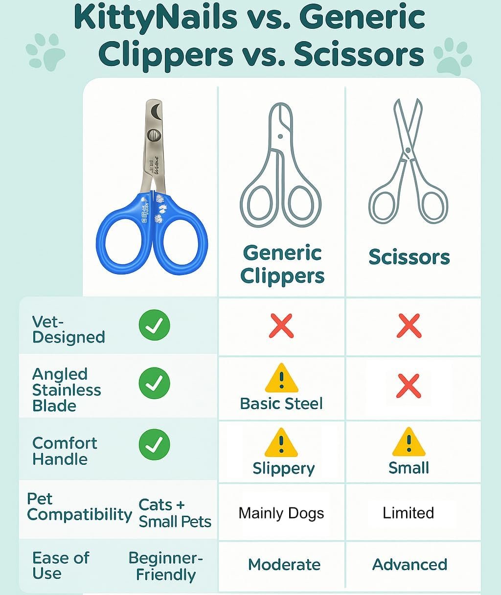 HOCHWERTIGE VERARBEITUNG: Die Katzenkrallenschere verfügt über professionelle und langlebige Präzisionsklingen aus Edelstahl, die ein reibungsloses, schnelles und sauberes Schneiden der Krallen ohne Quetschen ermöglichen.